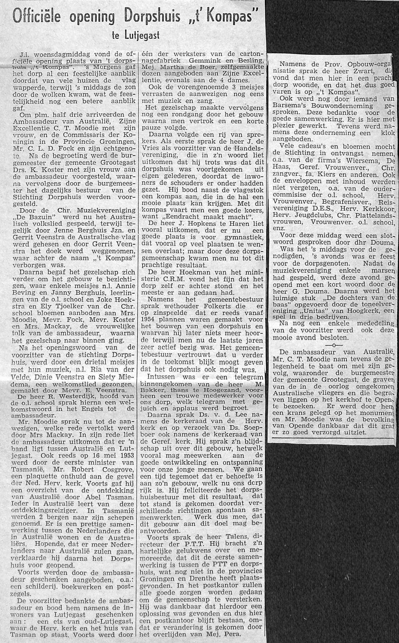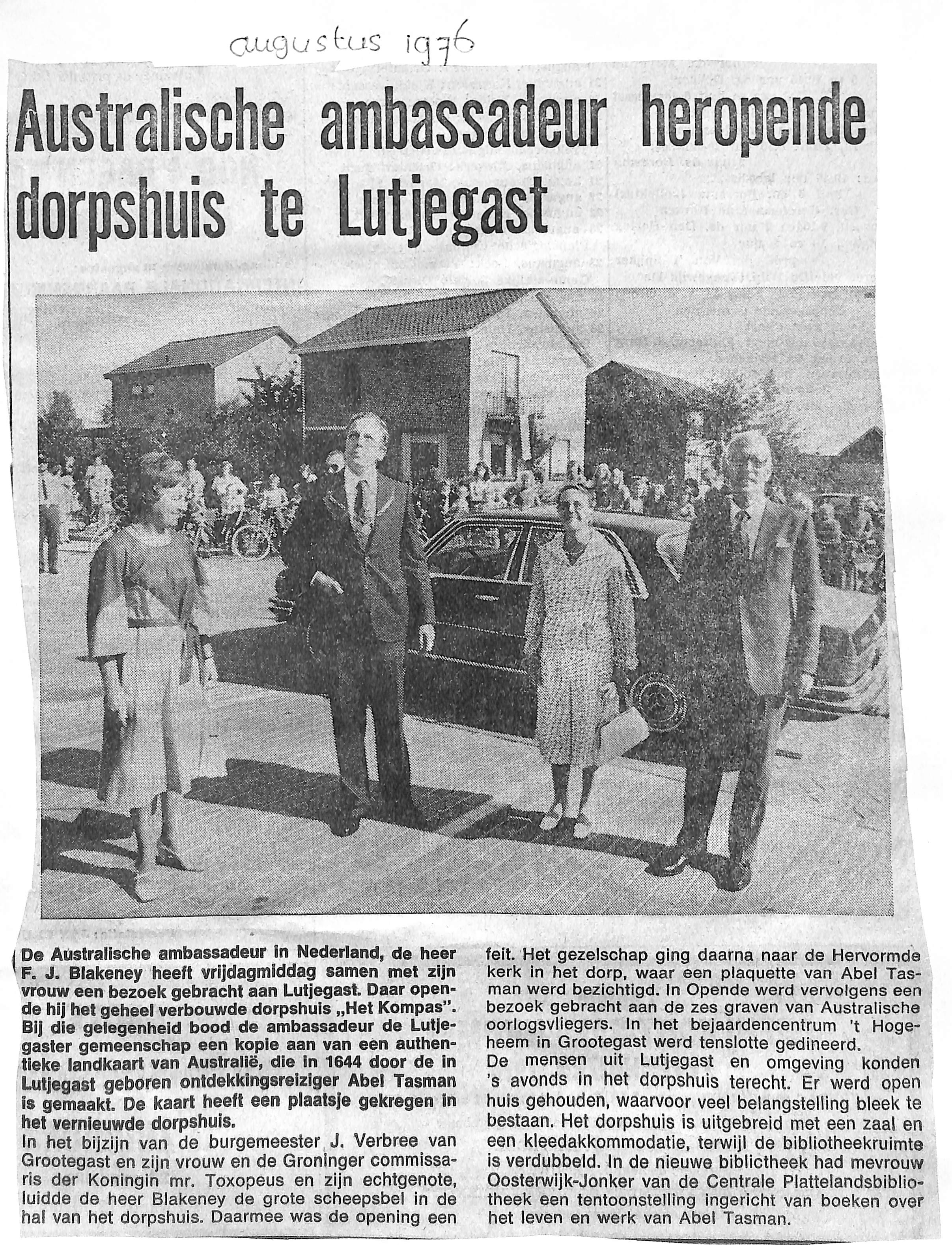Opening van vernieuwde Dorpshuis door Blakeney, de Australische Ambassadeur,