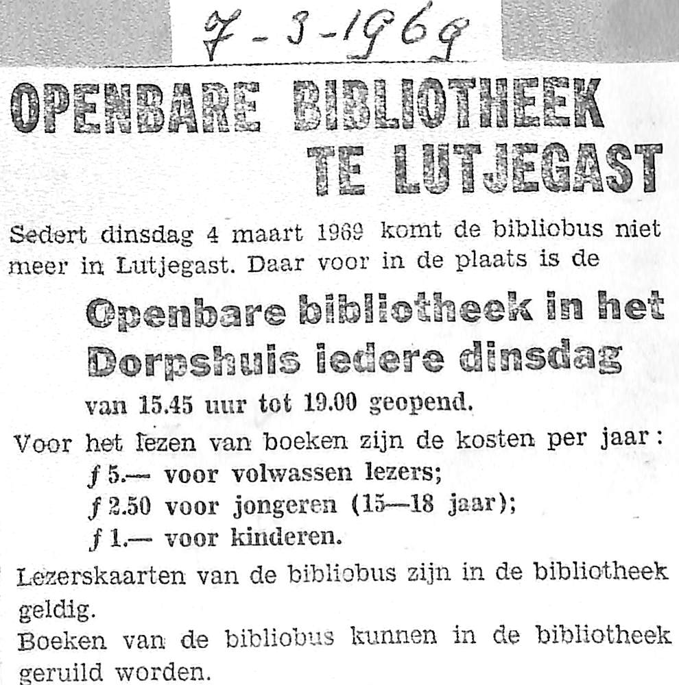Bibliobus verdwijnt, in dorpshuis vanaf 4 maart 1969 Bibliotheek gevestigd