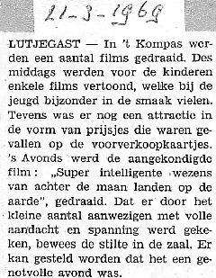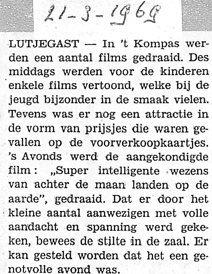 's middags films voor de jeugd, 's avonds de film "Super intelligente wezens van achter de maan landen op de aarde"