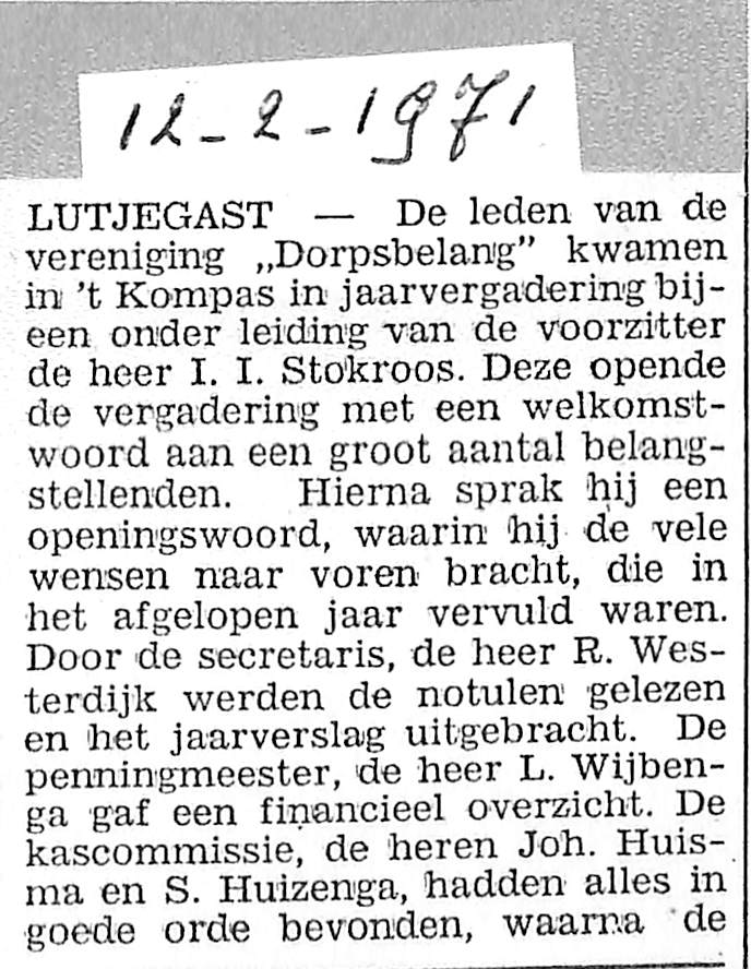 dhr I.I. Stokroos, dhr R. Westerdijk, dhr L. Wijbenga, dhr Joh. Huisma, dhr S. Huizenga