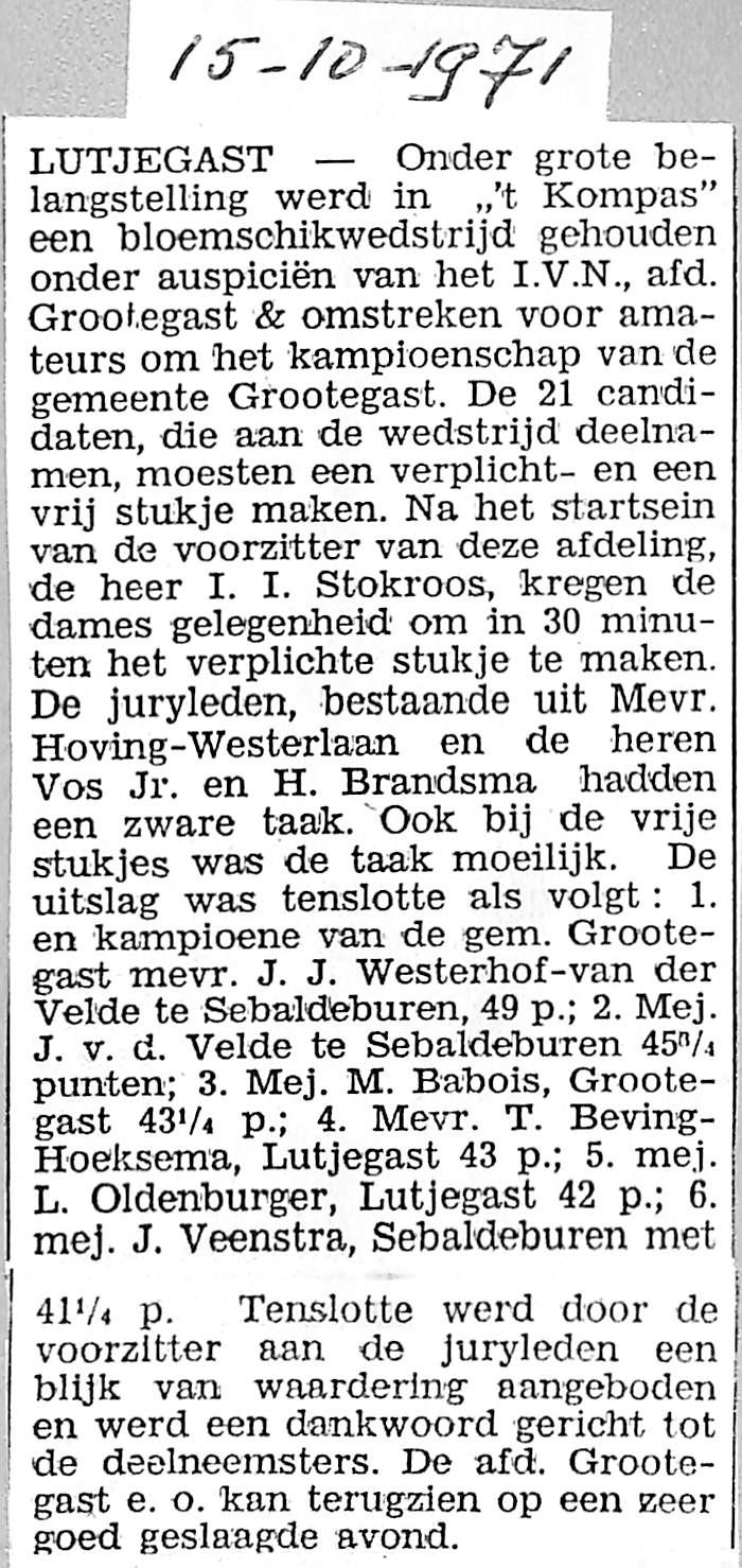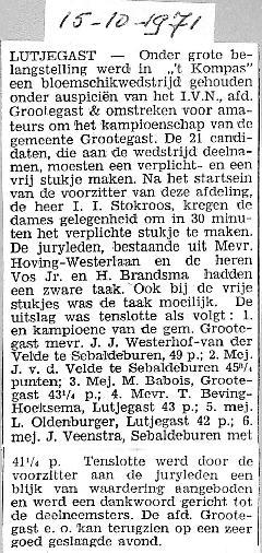 Mevr. T. Beving-Hoeksema werd 4e