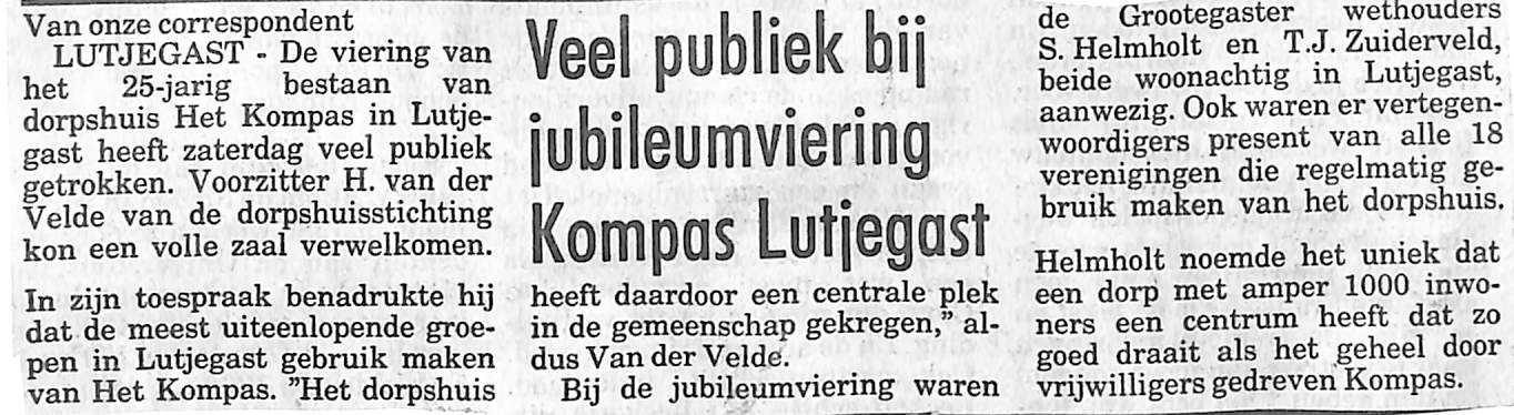 25-jarig jubileum dorpshuis 't Kompas; S. Helmholt, T. J. Zuiderveld, H. v/d Velde, K. B. Dijkstra