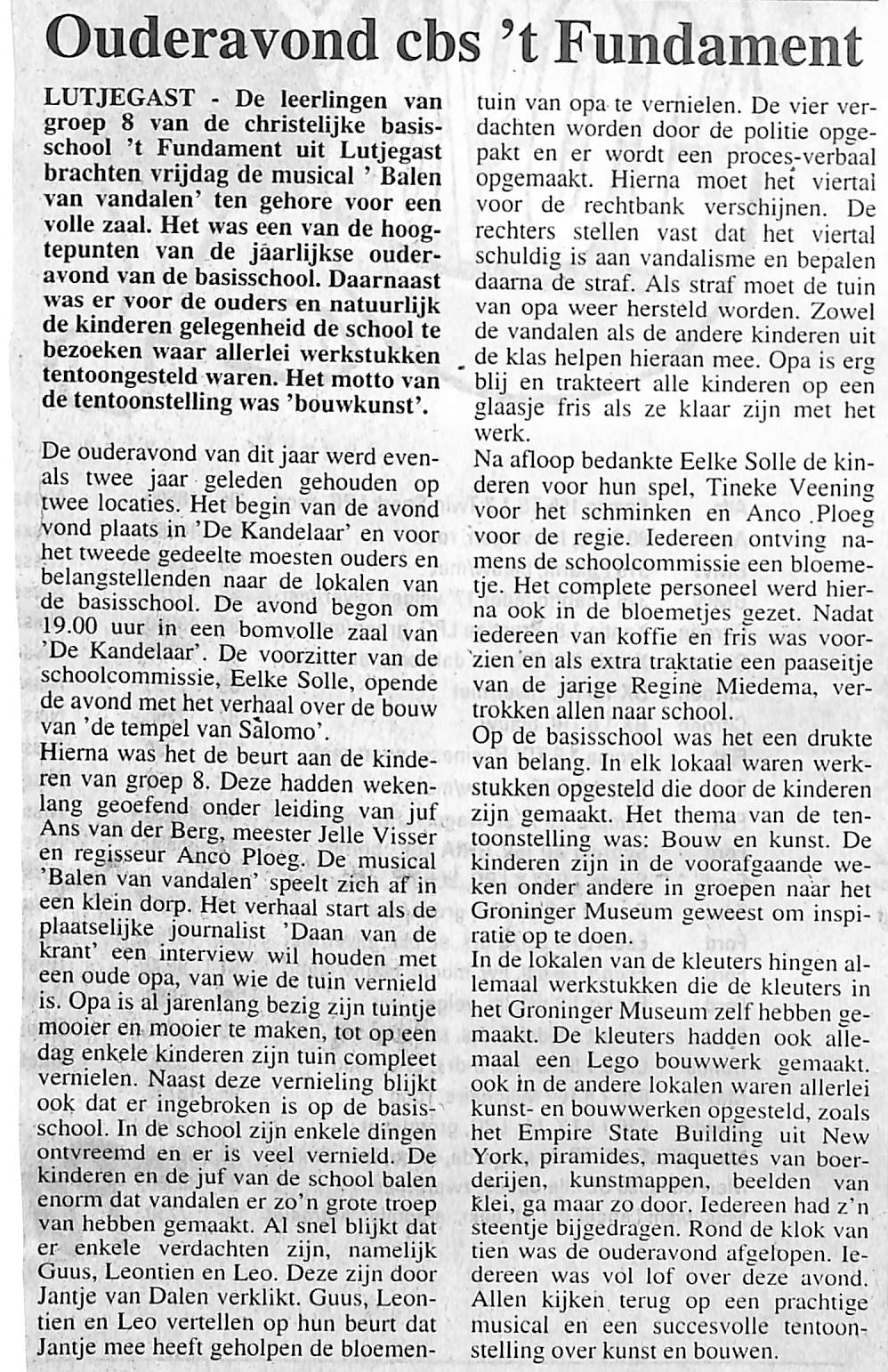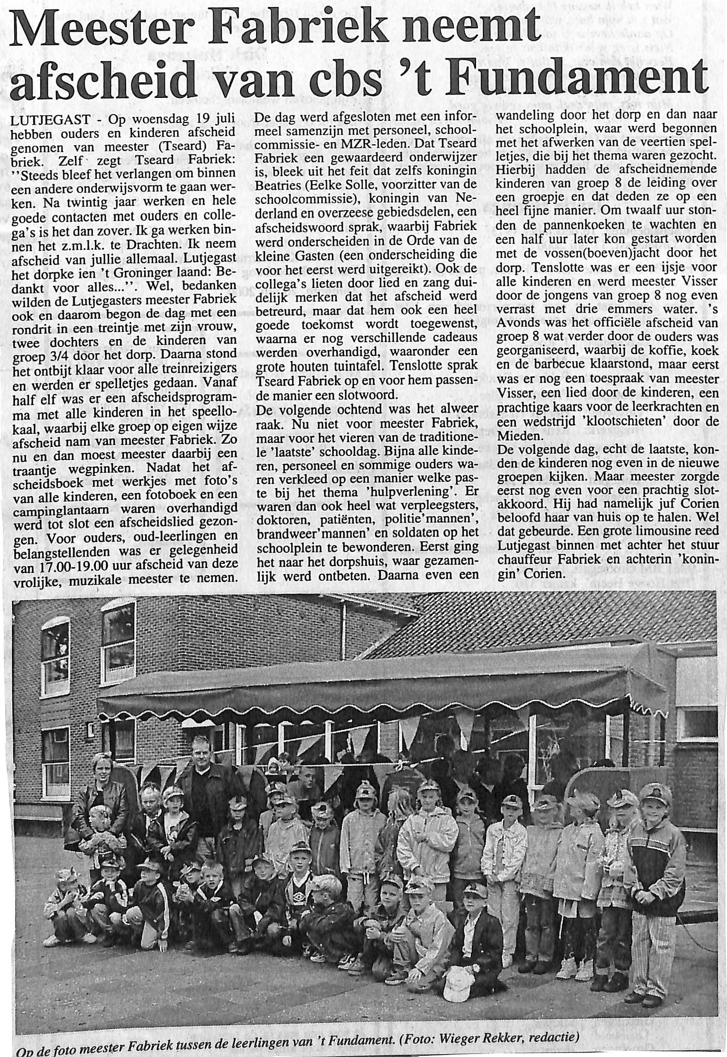 meester Tseard Fabriek neemt afscheid van cbs 't Fundament.