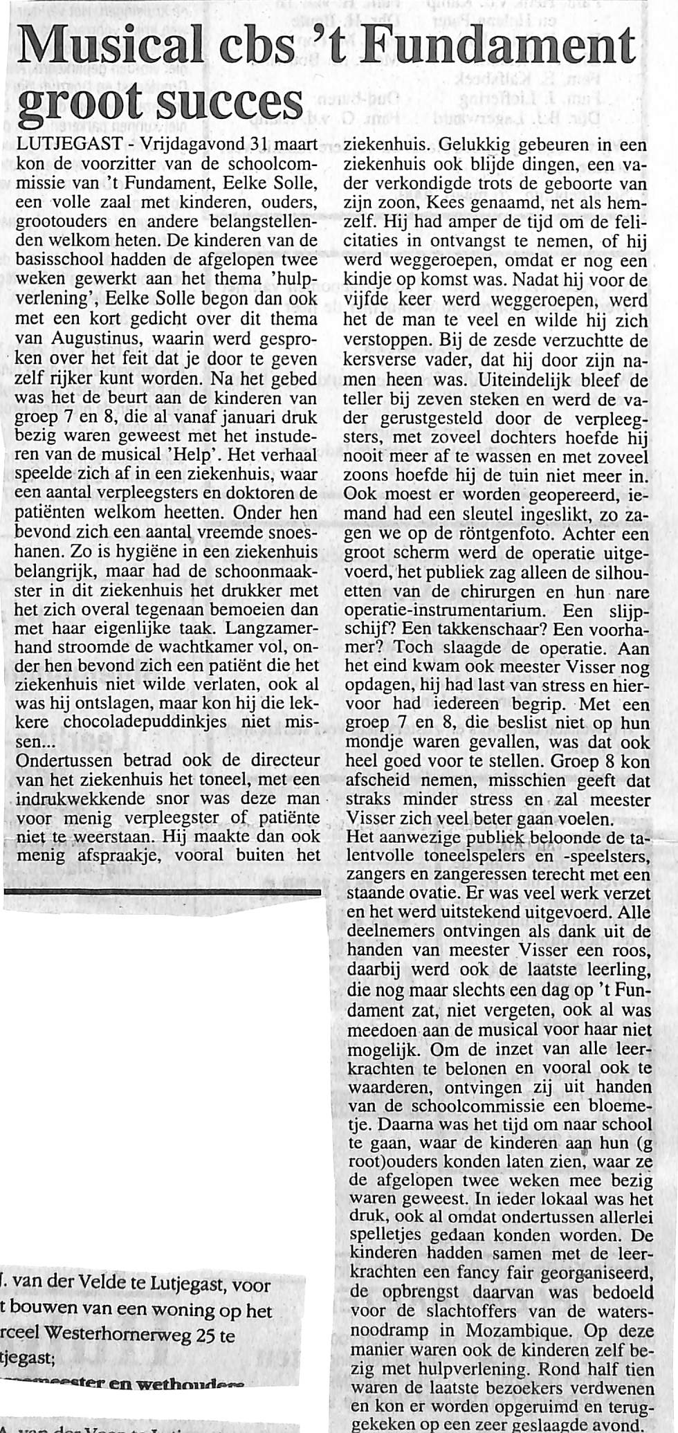 Bert Dijkstra, Karina Horenga, Ciska Bauer, Foppie de Boer, Otilja van der Bij, Thessa Zuidema, Sikke van Dekken, Jan Pieter Visser, Lianne Bruining, Wim Bijma, Frank de Haan, Rene Vroom, juffrouw Martini
