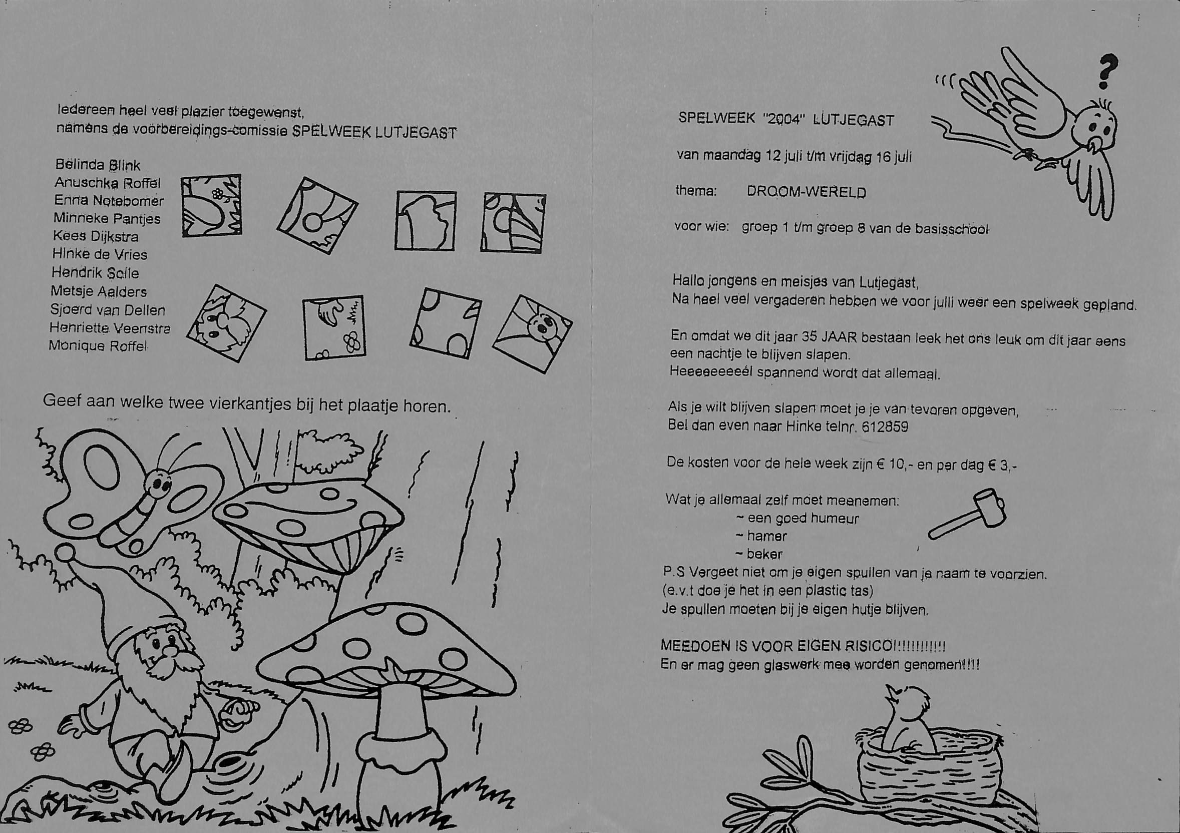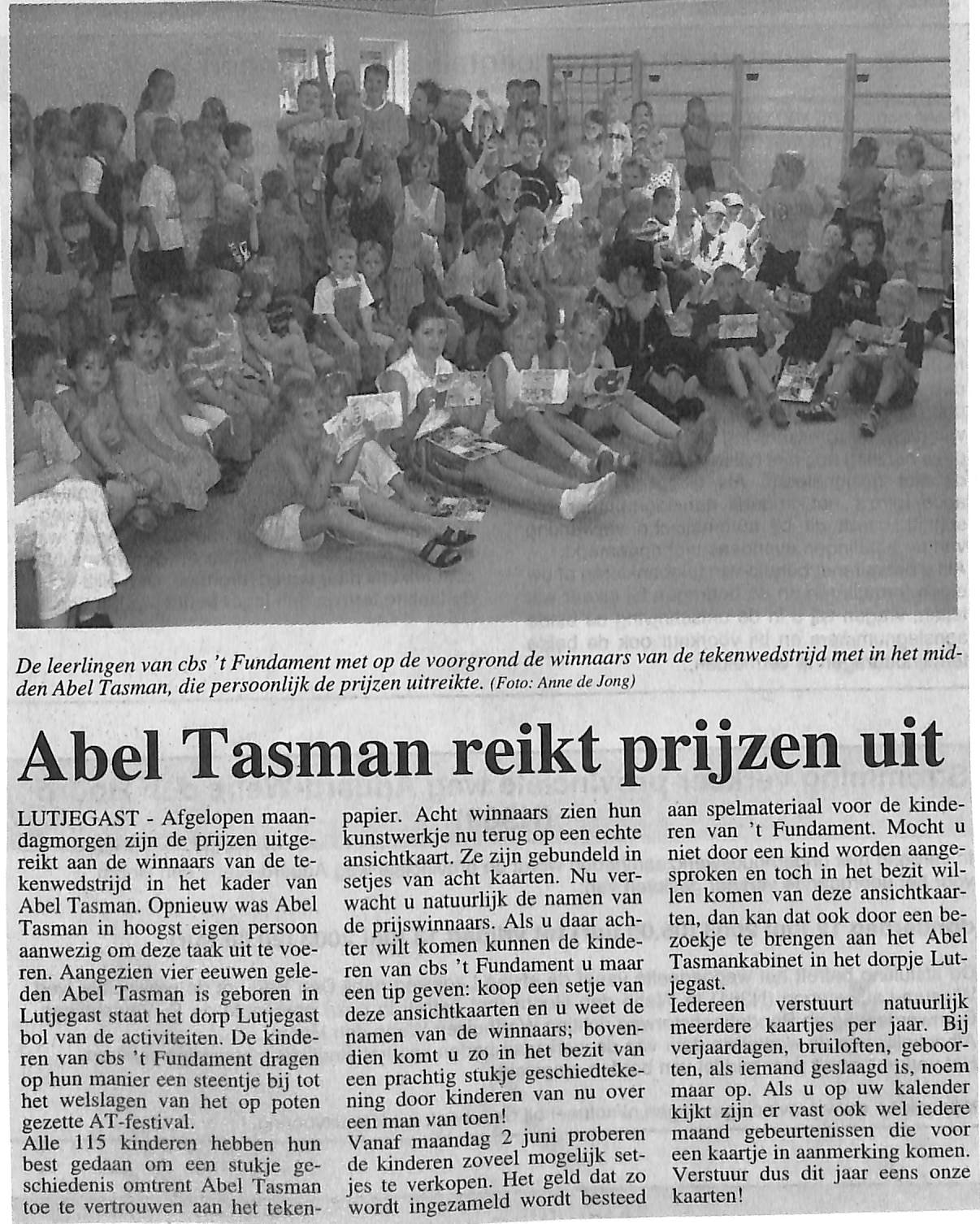 Emely ( groep 6) Wout-Jan (groep 4) Janco Visser (groep 7) Sarina Holtrop (groep 7) Dennis Wierda (groep 5) Greanne (groep 8) Agnetta (groep 8) Regine en Derwin (groep 4) Silvienne en Angela (groep 4) Melina (groep 4) Danny Aalders (groep 4) Bart (groep 6) Corine (groep 7)