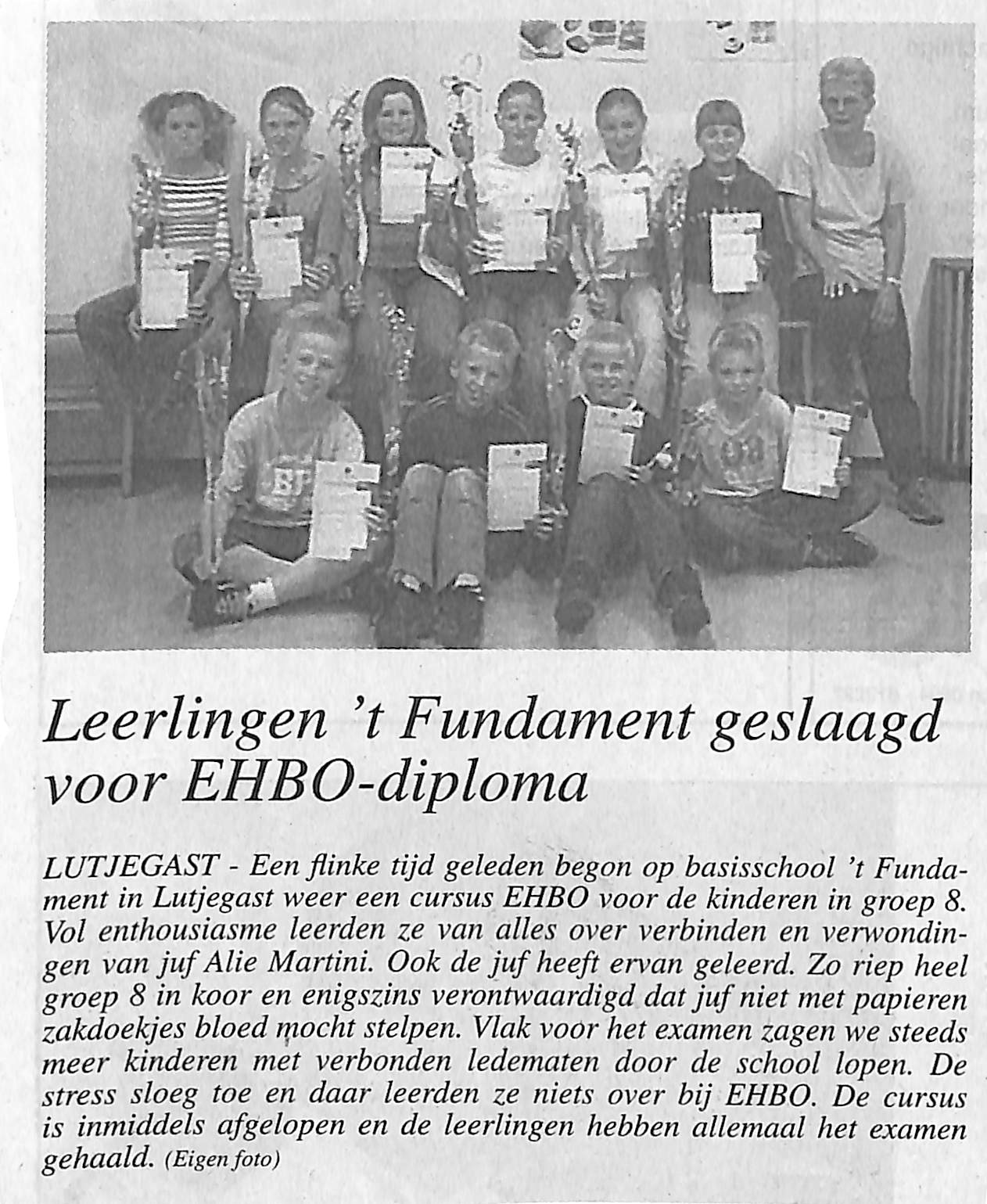 EHBO-diploma scholieren Lutjegast; Alie Martini