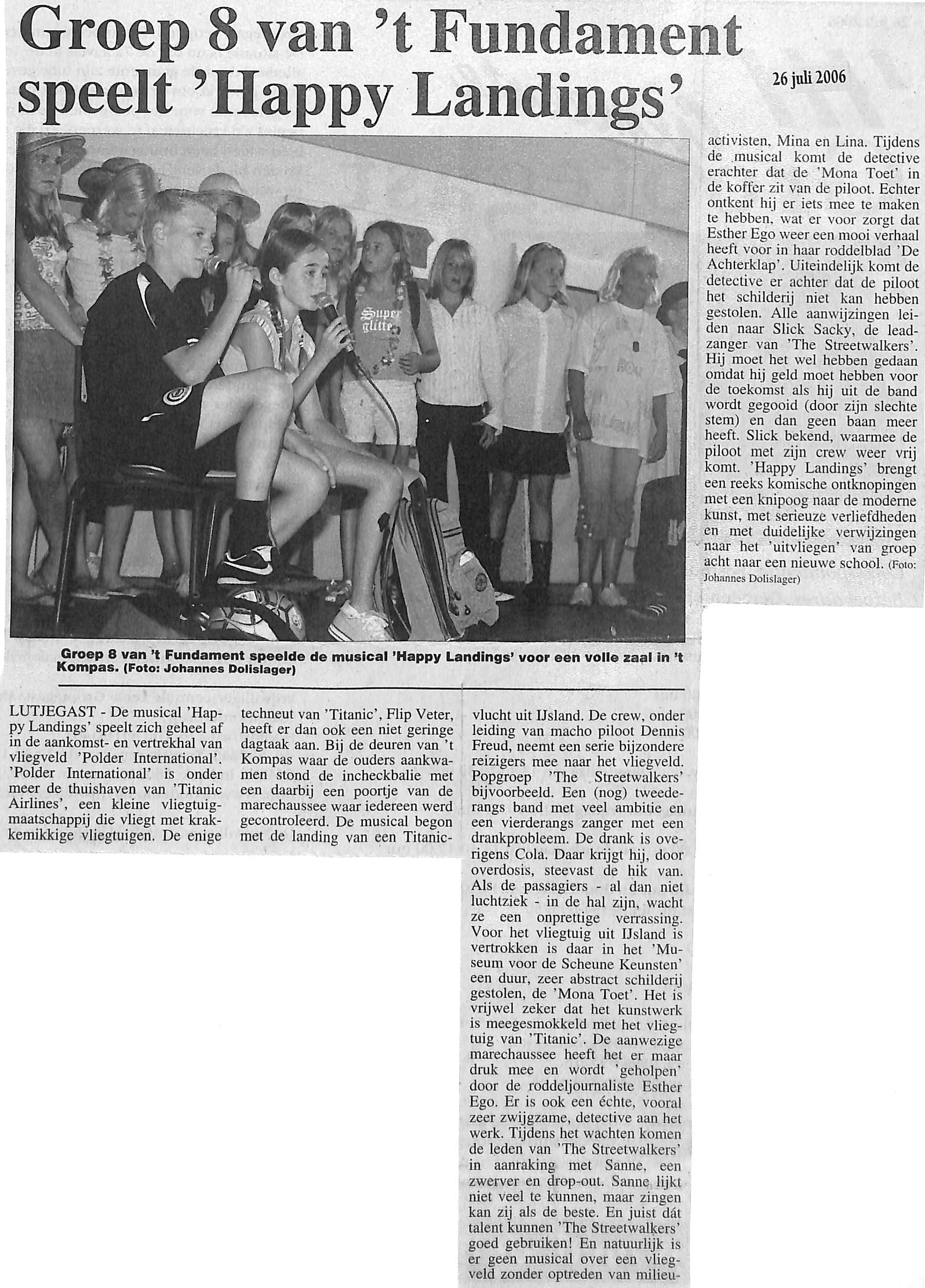 Groep 8 voerde de musical Happy Landings uit.
