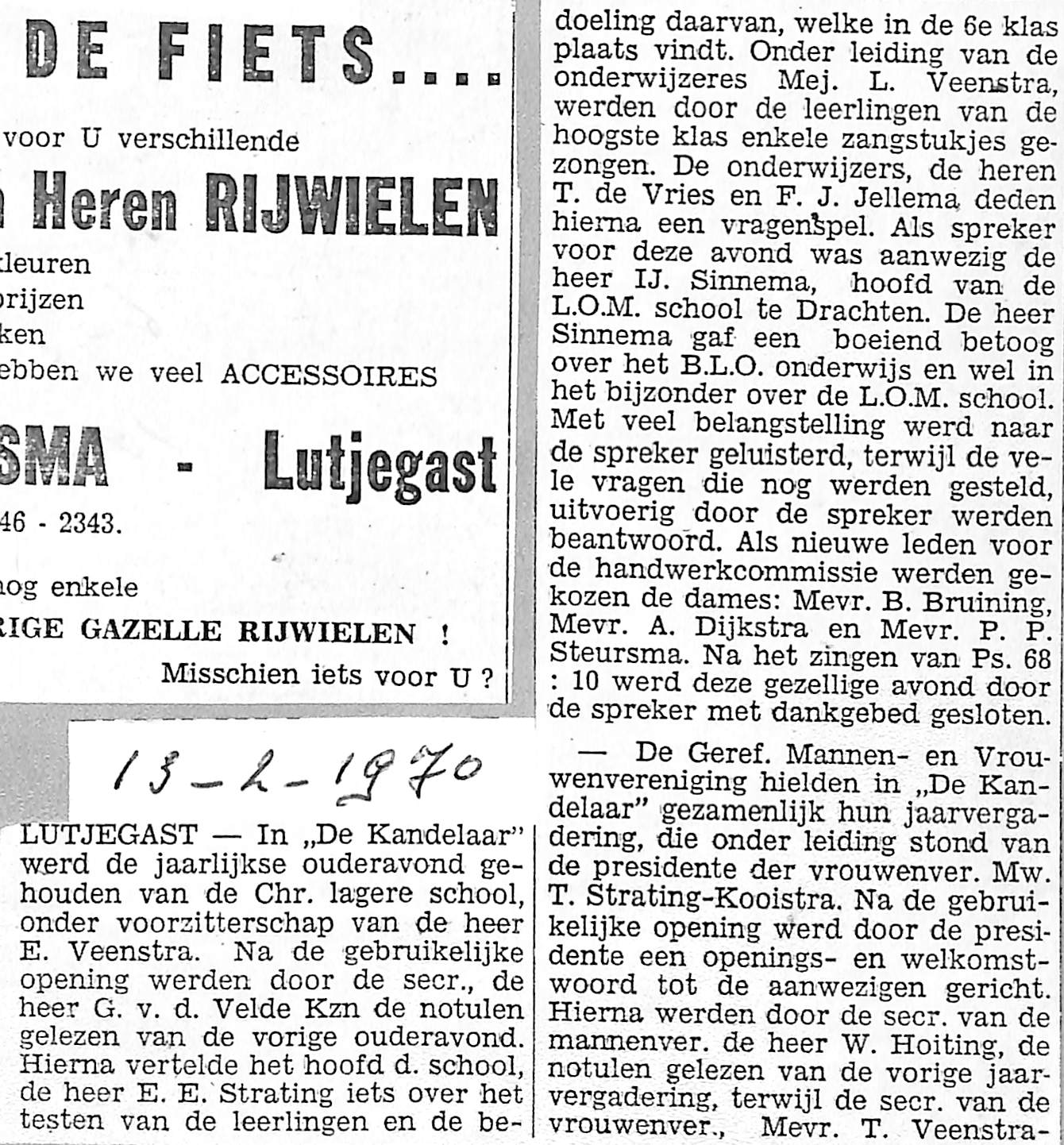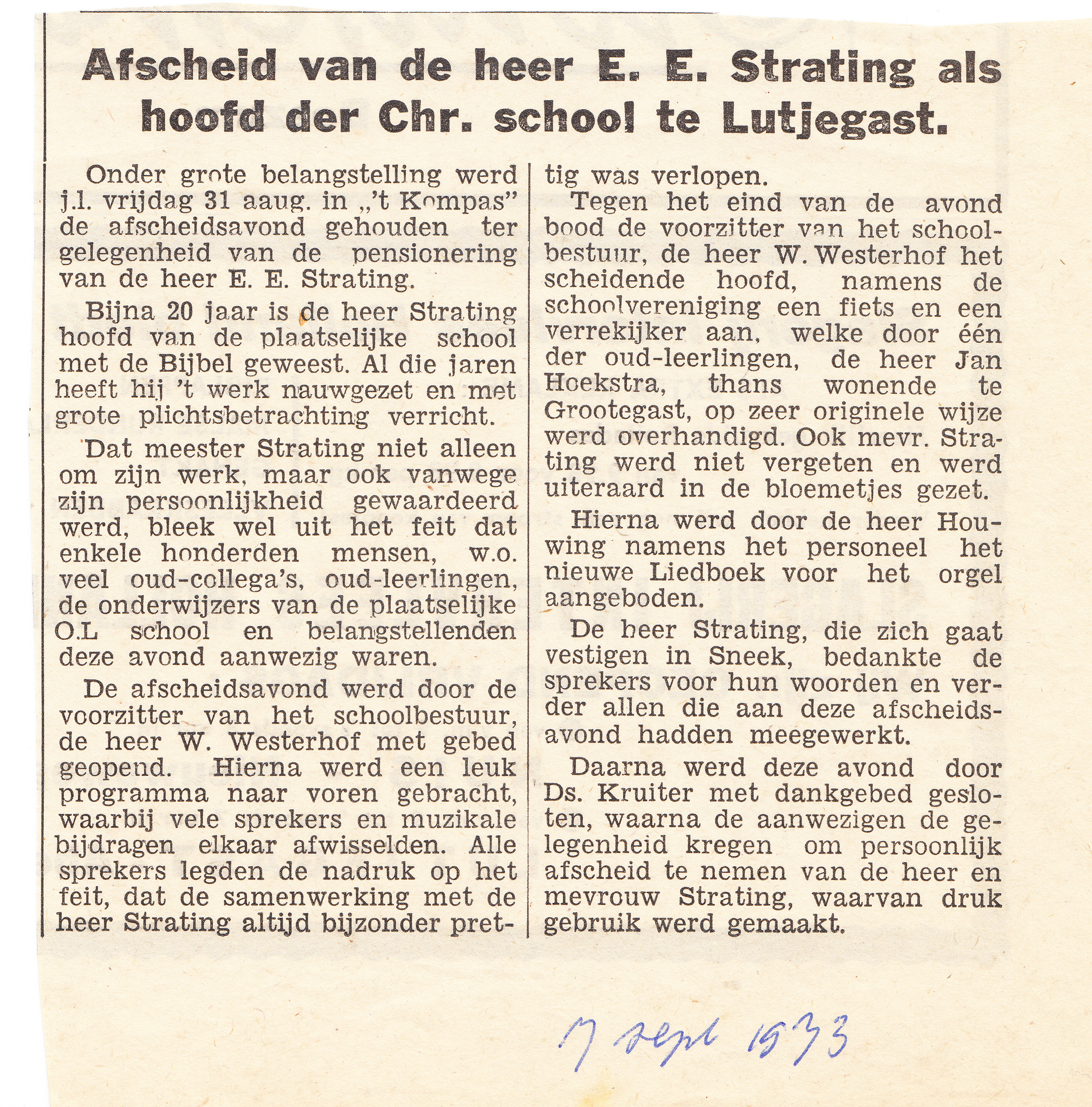 Afscheid E.E. Strating als hoofd van de chr. school te Lutjegast