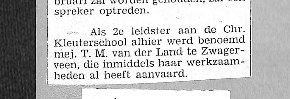 Benoeming 2e leidster aan de Chr. Kleuterschool