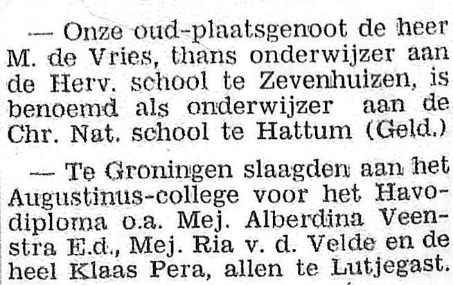 geslaagd voor Havo, Alberdina Veenstra, Ria v.d. Velde, Klaas Pera