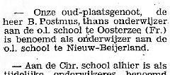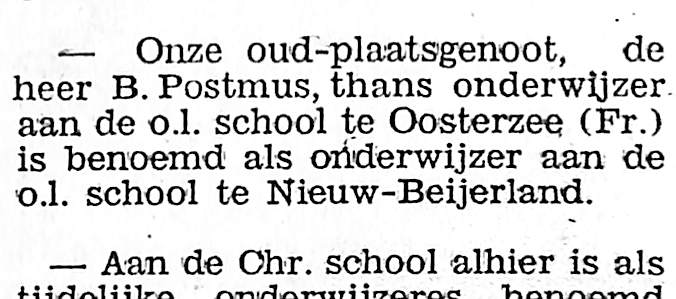 B. Postmu benoemd tot onderwijzer te Nieuw-Beijerland.