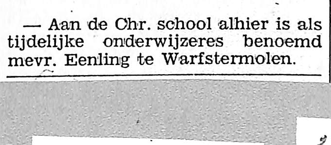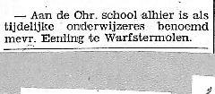 tijdelijk benoemd Mevr. Eenling uit Warfstermolen