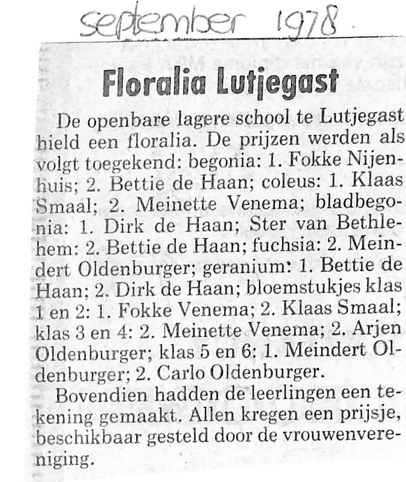 schaatswedstrijd voor de kinderen van de lagere school uit Lutjegast, Fokke NIjenhuis; Tineke van Esch; Mineke de Vries, Allanda Oldenburger, Anna Hoeksma, Hendrik Renkema, Otto Vogelzang, Riekel Wobbes, Margriet Bosklopper, Diny v.d. Velde, Greetje Martini, Sietse Solle, Johan Notebomer, Theo v.d. Bijl, Gerda v.d. Molen, Jeanet Plantenga, Ciska Visser, Eise Hoeksema, Carla Oldenburger, Ellen Zuidema, Aafke van Dellen, Meindert Oldenburger,Jan Hazenberg, Johnny v.d. Velde, Janny Pompstra, Pita van Dellen, Aly Solle, Bert. v.d. Velde, Joost Bosklopper, Tamma Zwama, Pieta Wierda, Tiny Solle, Anita Huisma, Meindert Jan Oldenburger, Berend de Vries, Jacob Huisma.
