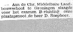 Jaap Postma werd benoemt als onderwijze aan de Chr. basisschool te Bedum