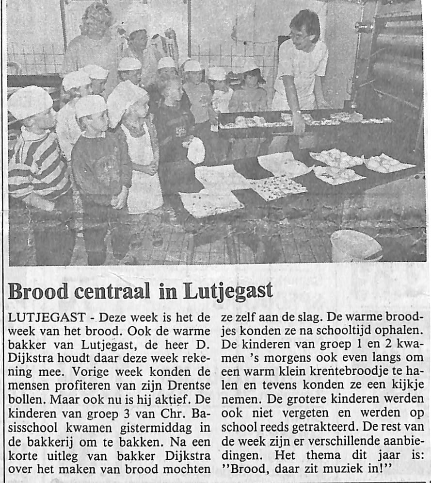 Ter ere van de week van het brood mochten de kinderen van de Chr. Basisschool zelf broodjes bakken onder begeleiding van Bakker D. Dijkstra.