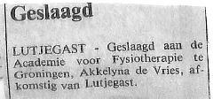 geslaagd voor de Academie voor Fysiotherapie Akkelyna de Vries