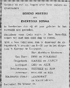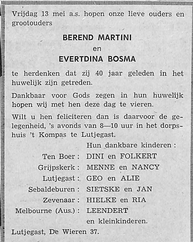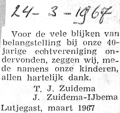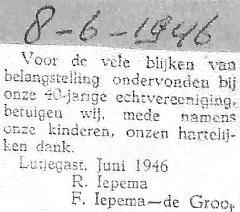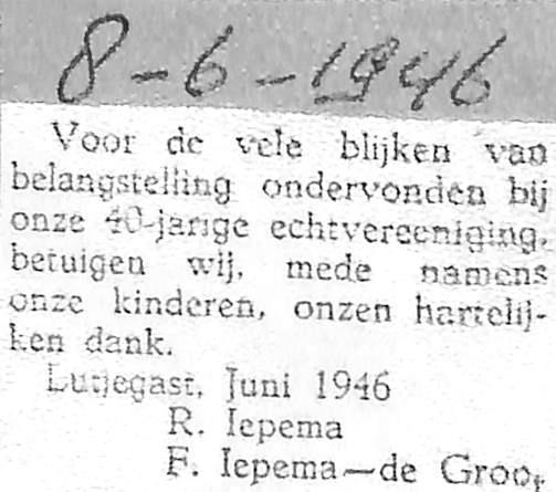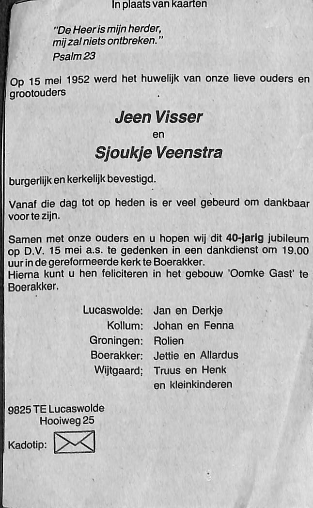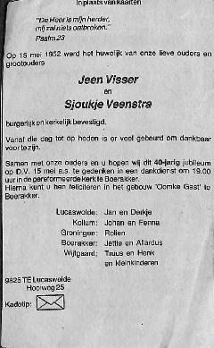 40 jarig huwelijk van Jeen Visser en Sjoukje Veenstra