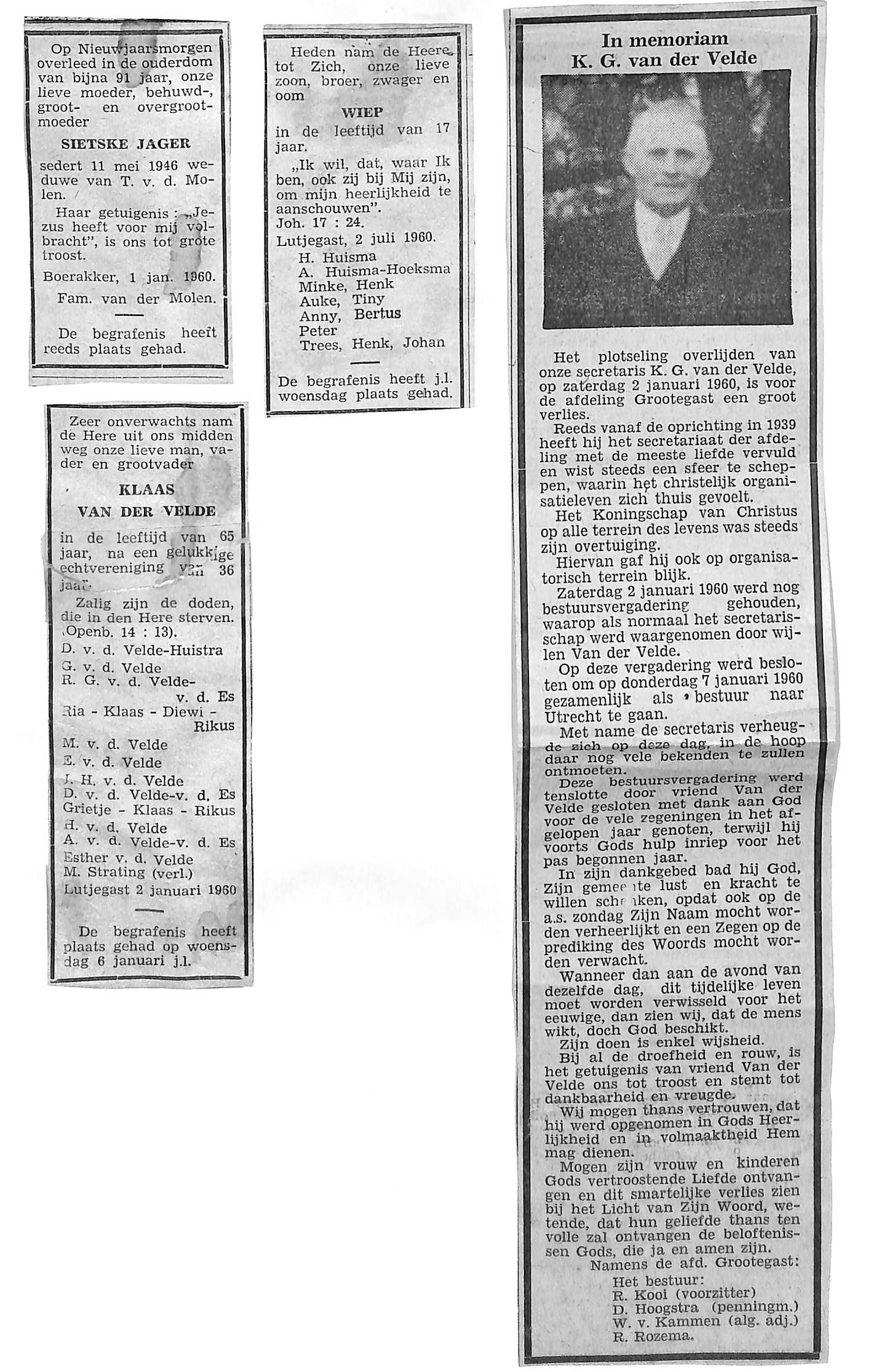 Overleden, K. G. van der Velde, R. Kooi, D. Hoogstra, W, v. Kammen, R. Rozema, v.d. Es, Strating
