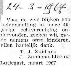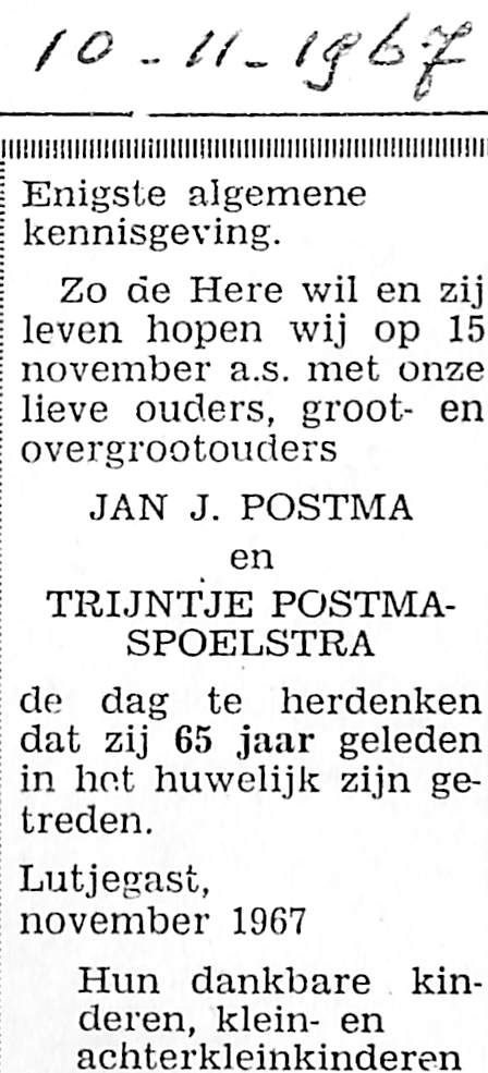 Op 15 november 1967 is echtpaar 65 jaar getrouwd