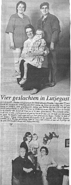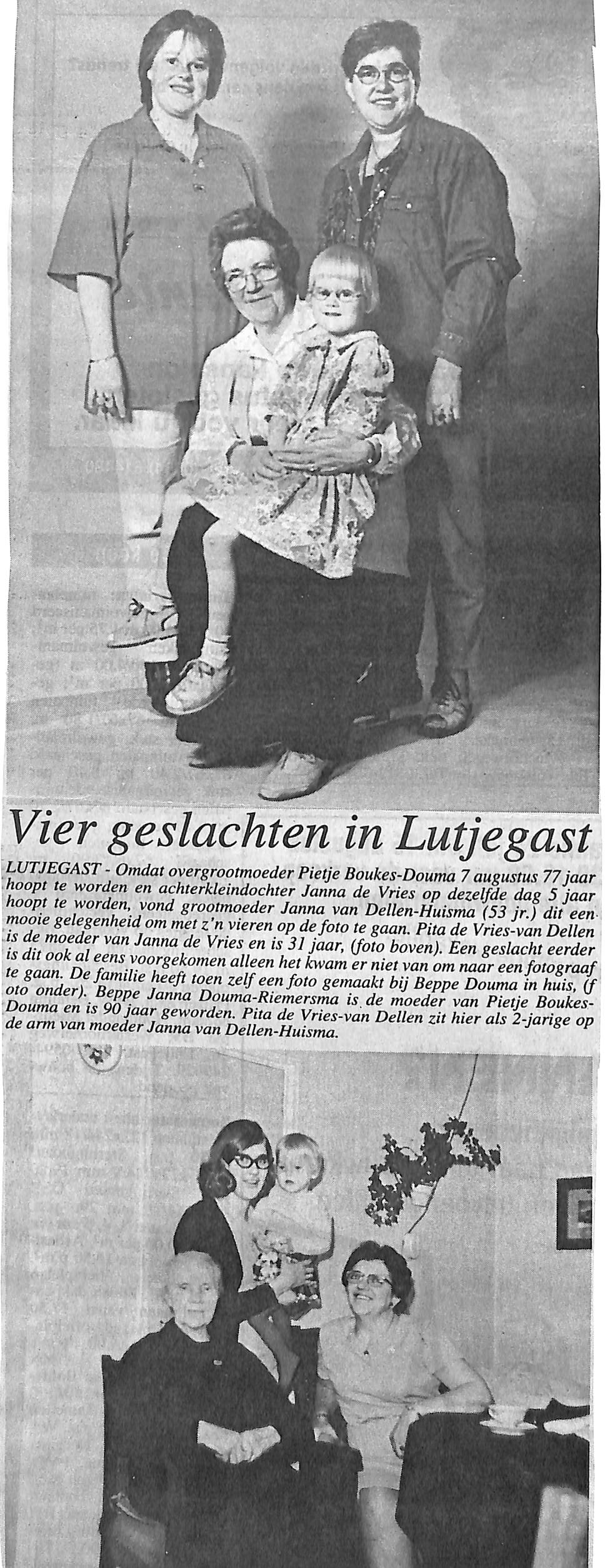 vier generaties: Pietje Boukes-Douma, Janna van Dellen-Huisma, Pieta de Vries-van Dellen, Janna de Vries