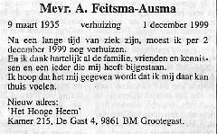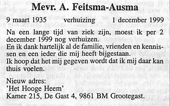 mevr. A. Feitsma-Ausma naar Hoge Heem