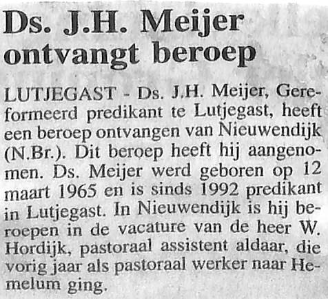 Beroep heeft hij aangenomen. Hij v ertrekt dus naar Nieuwendijk.