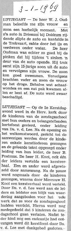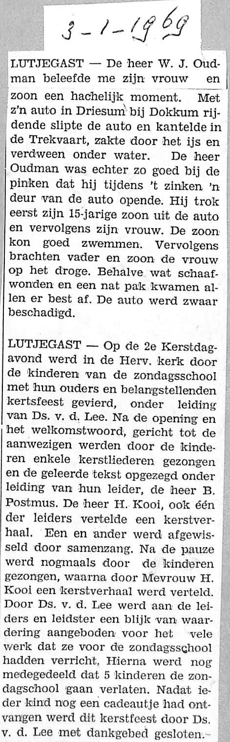 Auto fam. Oudman zakt door ijs in trekvaart bij Driesum