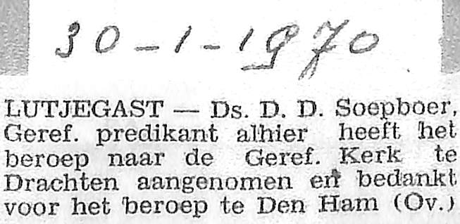 beroep naar Drachten wordt aangenomen, voor Den Ham (Ov) wordt bedankt