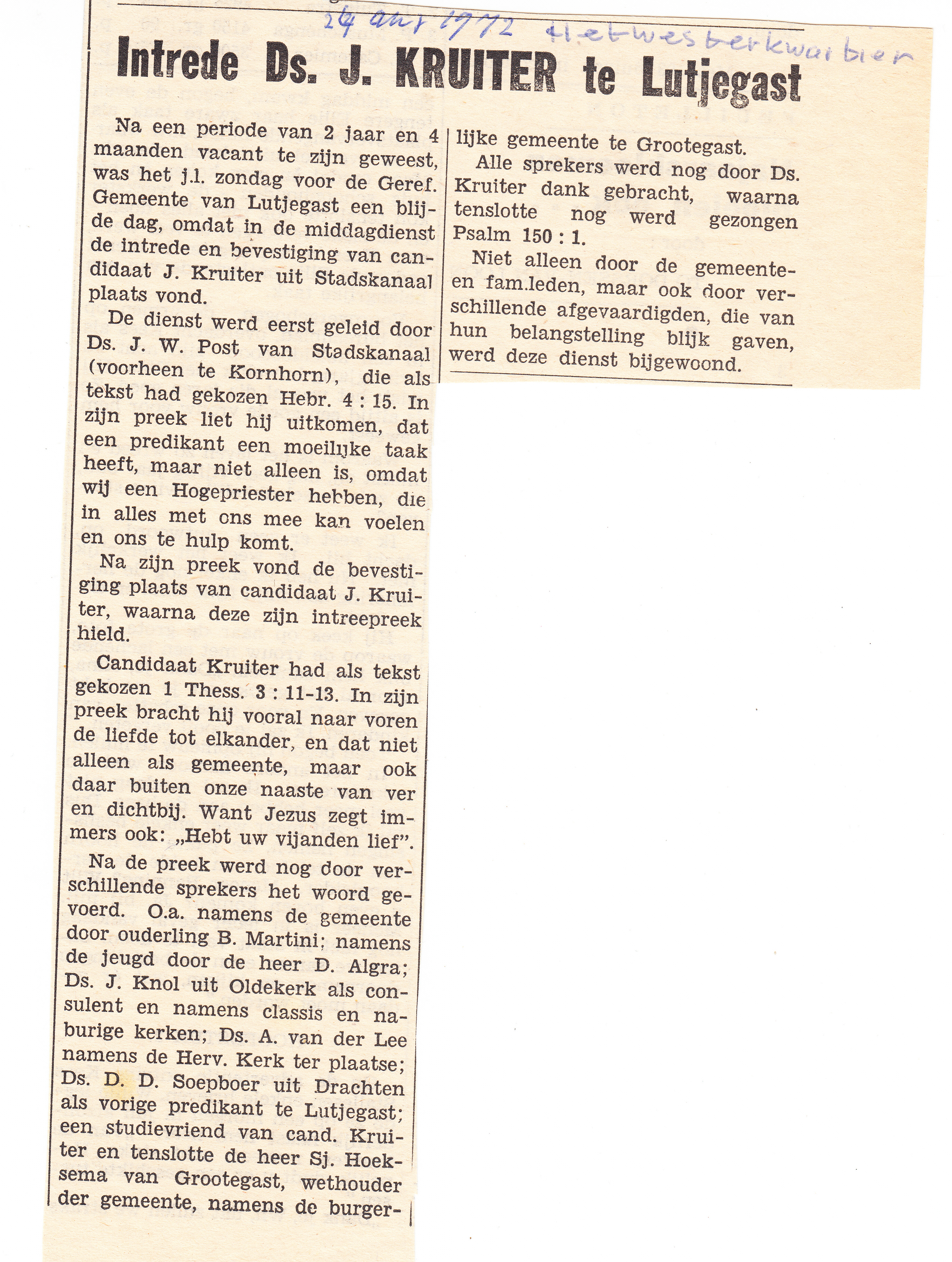 intrede Ds Kruiter, B. Martini, D. Algra, J. Knol, van der Lee, Sj. Hoeksema,