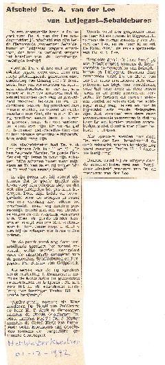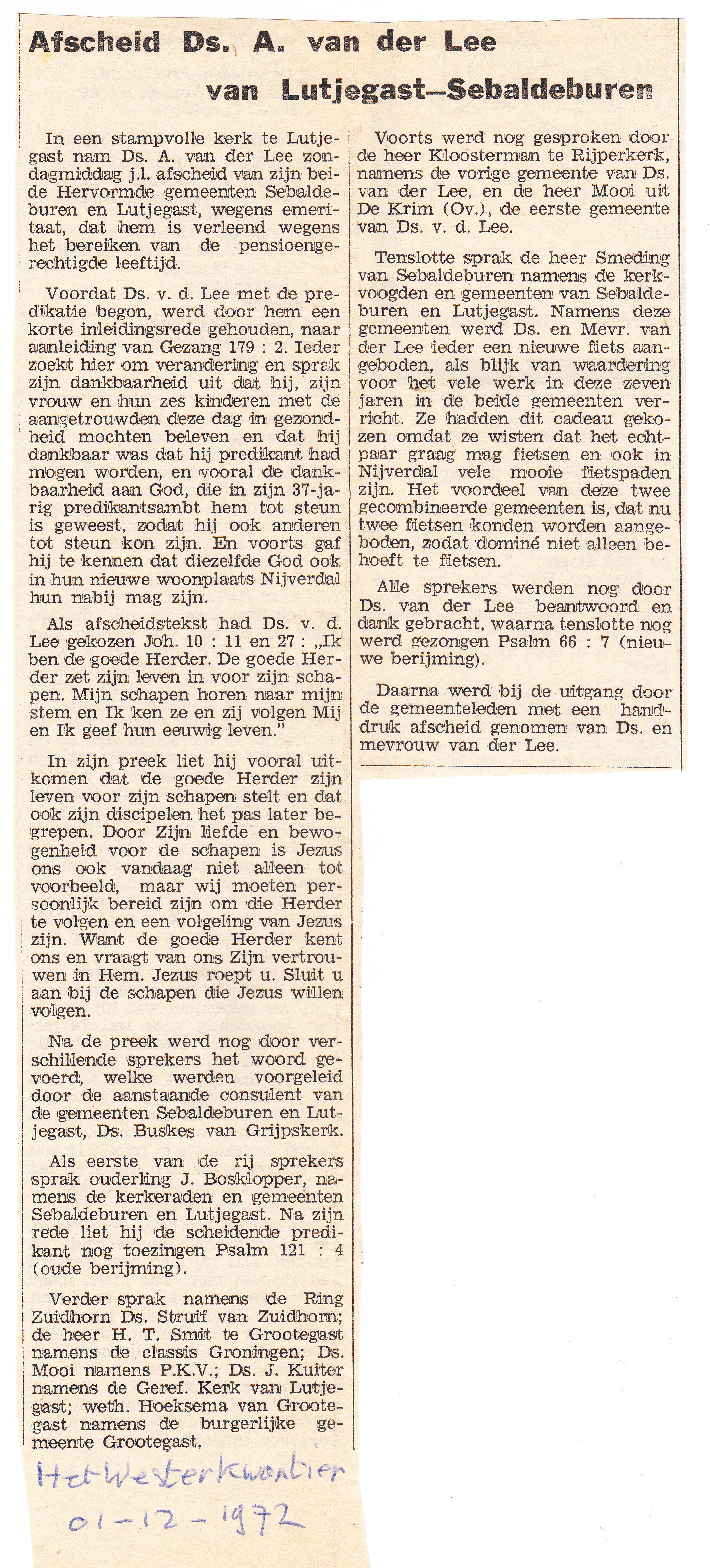 1e bericht: mevr. Van der Lee, mej. S. Oudman, ds Van der Lee