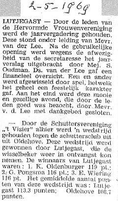 2e bericht: uitslag wedstrijd tegen Oldehove van Schuttersvereniging "'t Vizier"