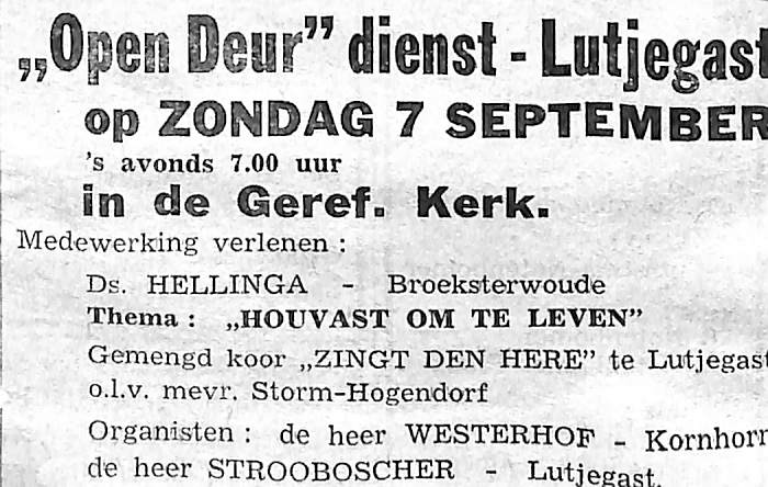 Open deur dienst; Hellinga, Storm-Hogendorf, Westerhof, Strooboscher