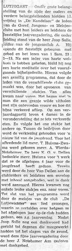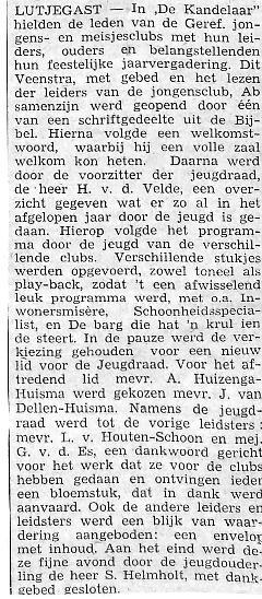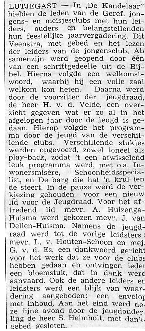 jaarvergadering Gerf. jongens- en meisjesclub; H. v/d Velde, A. Huizinga-Huisma, J. van Dellen-Huisma, L van Houten/Schoon, G. v/d Es, S. helmont