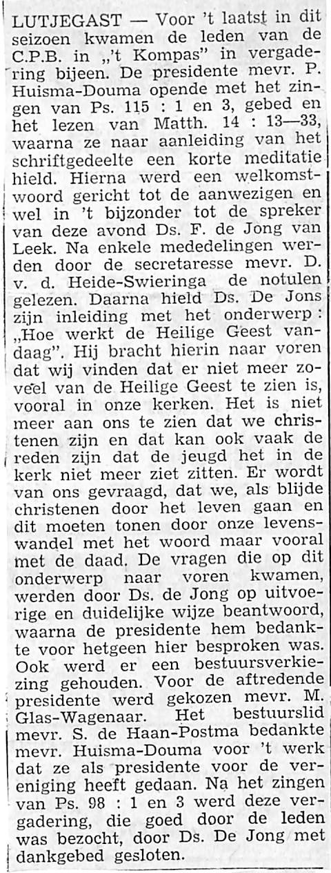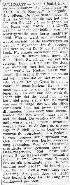 vergadering van CPB in Kompas, P. Huisma - Douma, D. v.d. Heide, J.G. Broertjes