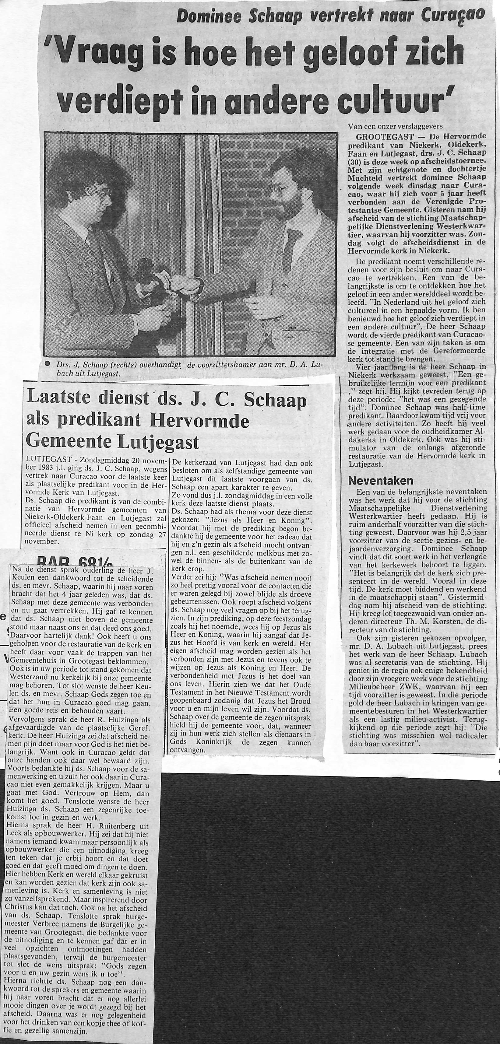 Ds. Schaap vertrekt naar CuraƧao. , Korsten, Lubach