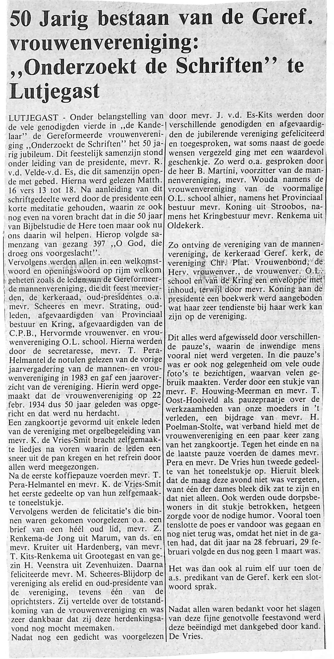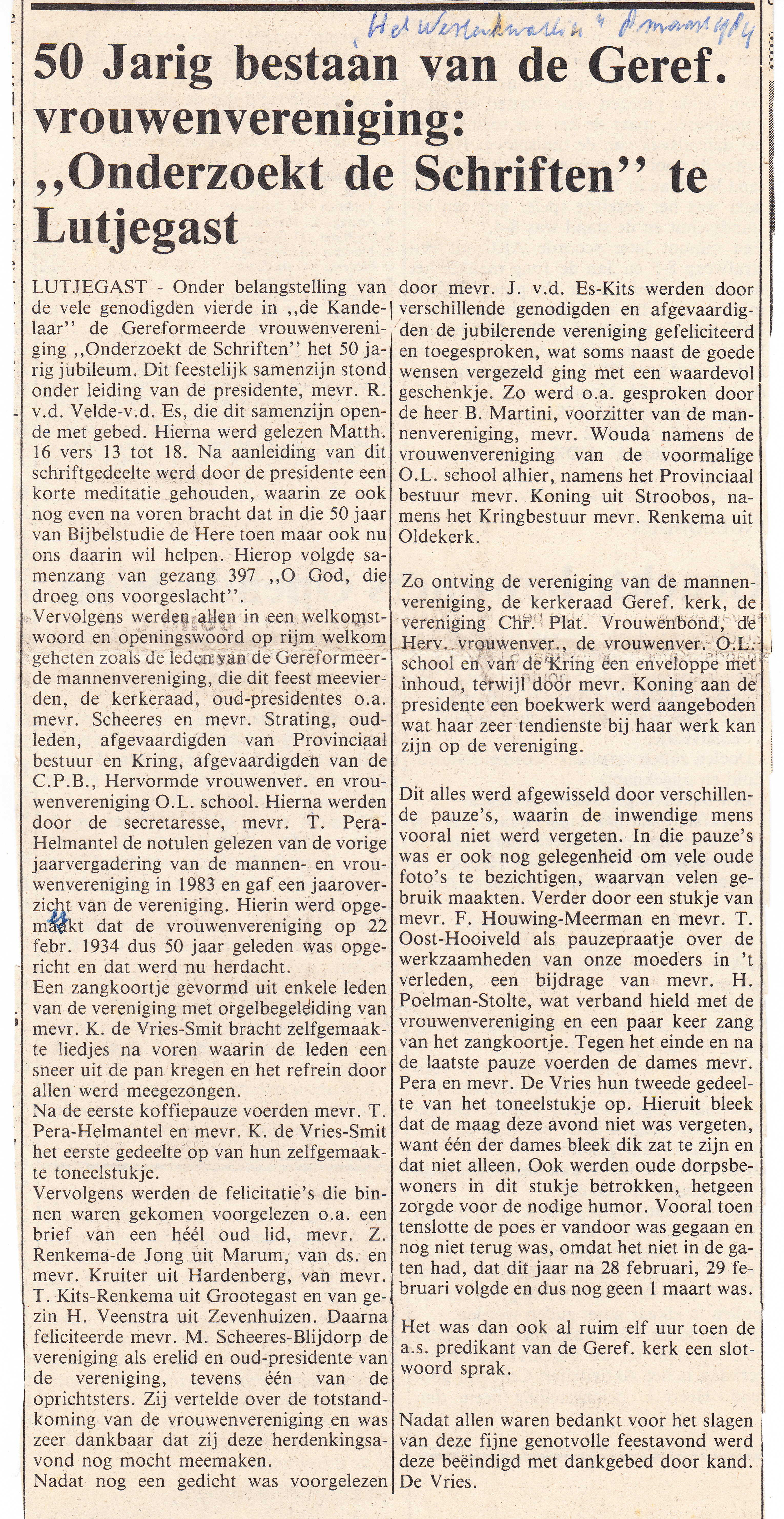 R. v.d. Velde - van der Es., Scheeres, Strating, K. de Vries - Smit, T. Pera - Helmantel, Z. Renkema, T. Kits, M. Scheeres, B. Martini, Wouda, Koning, Renkema, Chr. Plat, F. Houwing, T. Oost - Hooiveld, Poelman - Stolte, Ds. De Vries,