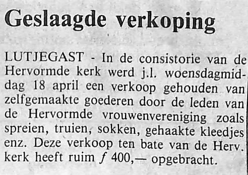 verkoopmiddag georganiseerd door de vrouwenvereniging