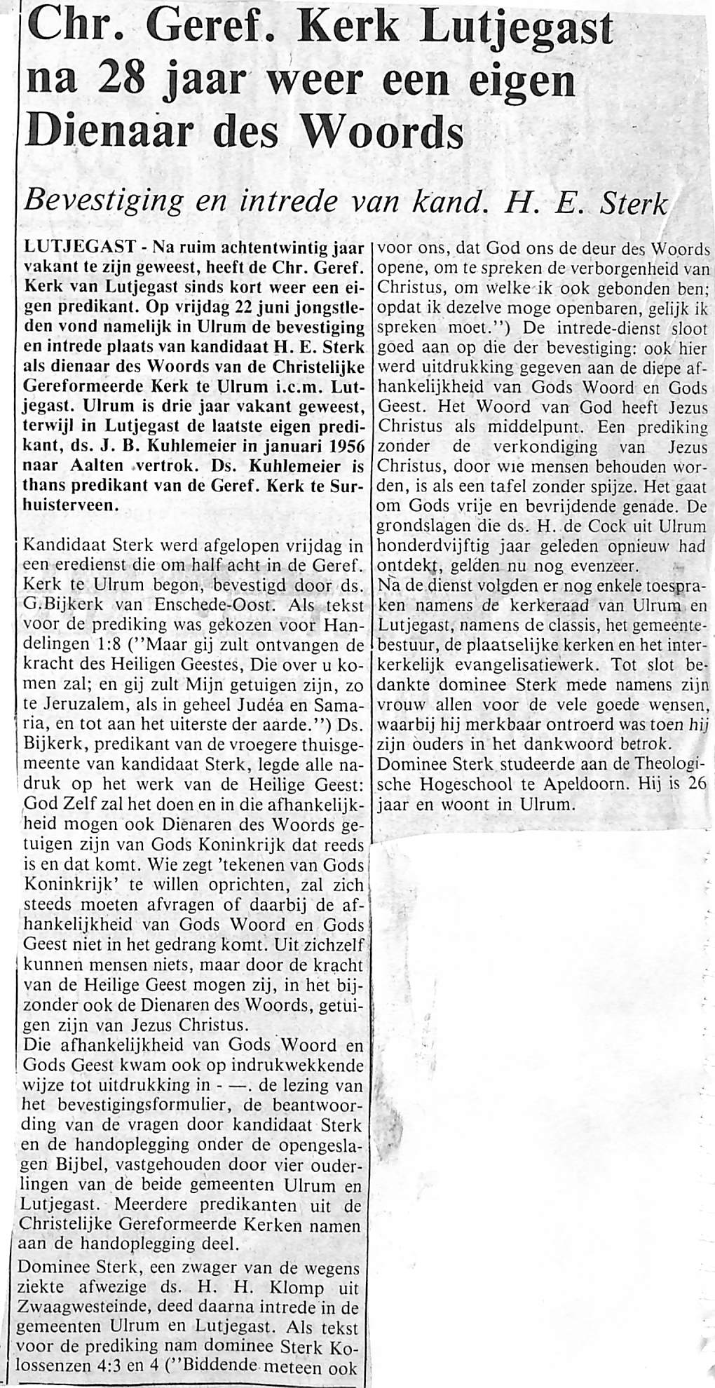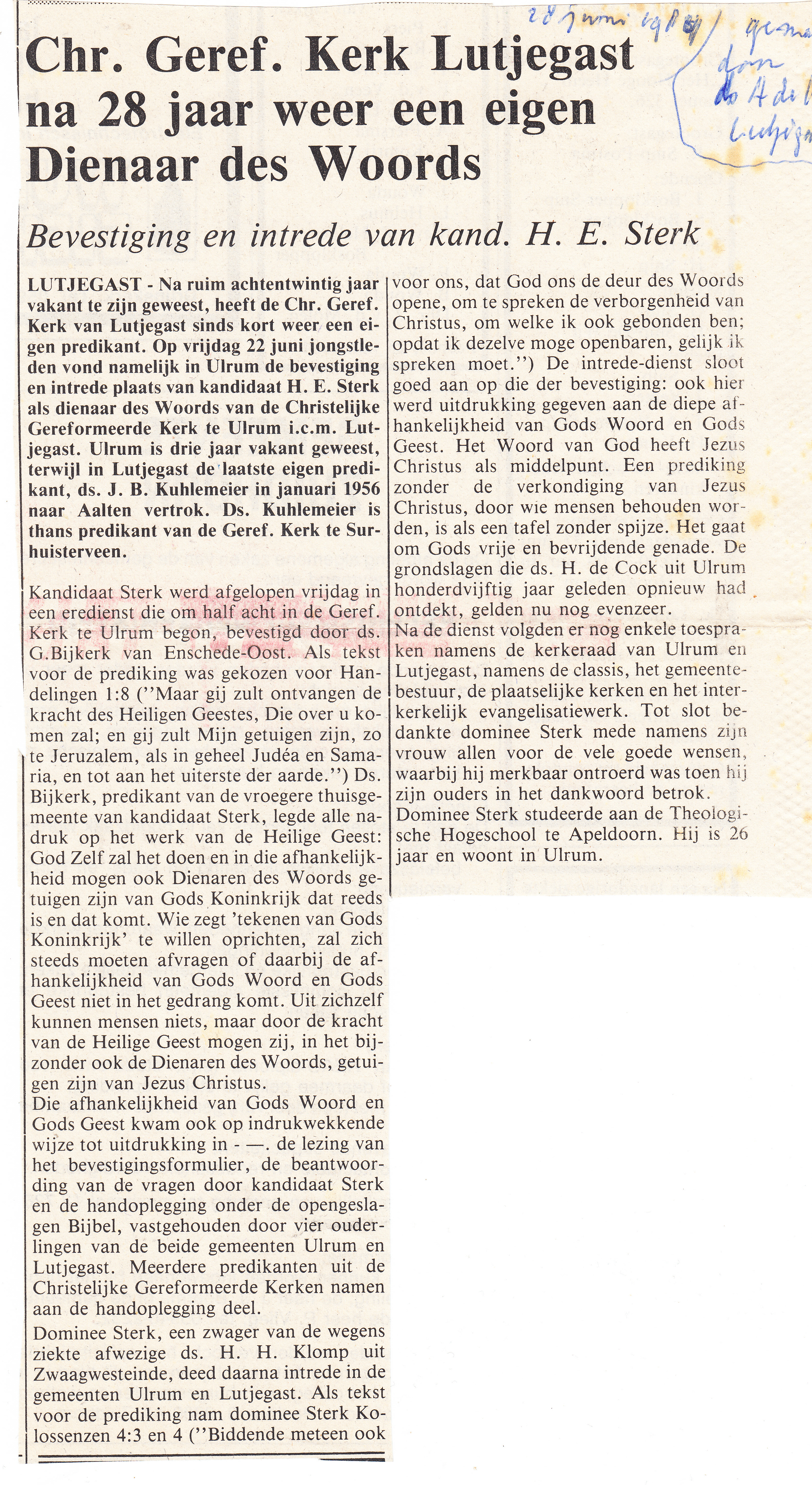 Chr. Geref. Kerk. intrede Ds. Sterk