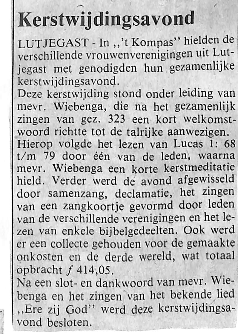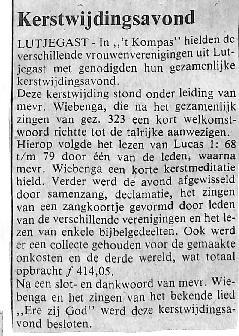 verschillende vrouwenverenigingen hielden een kerstwijding in 't Kompas; Wiebenga