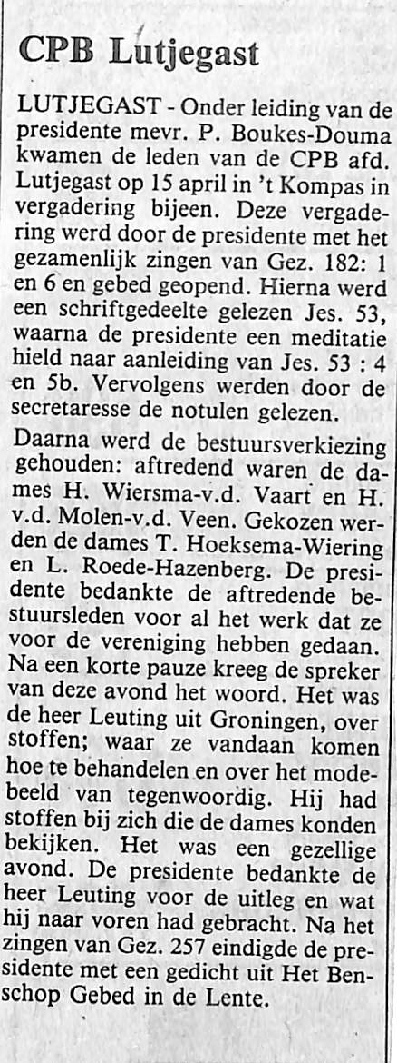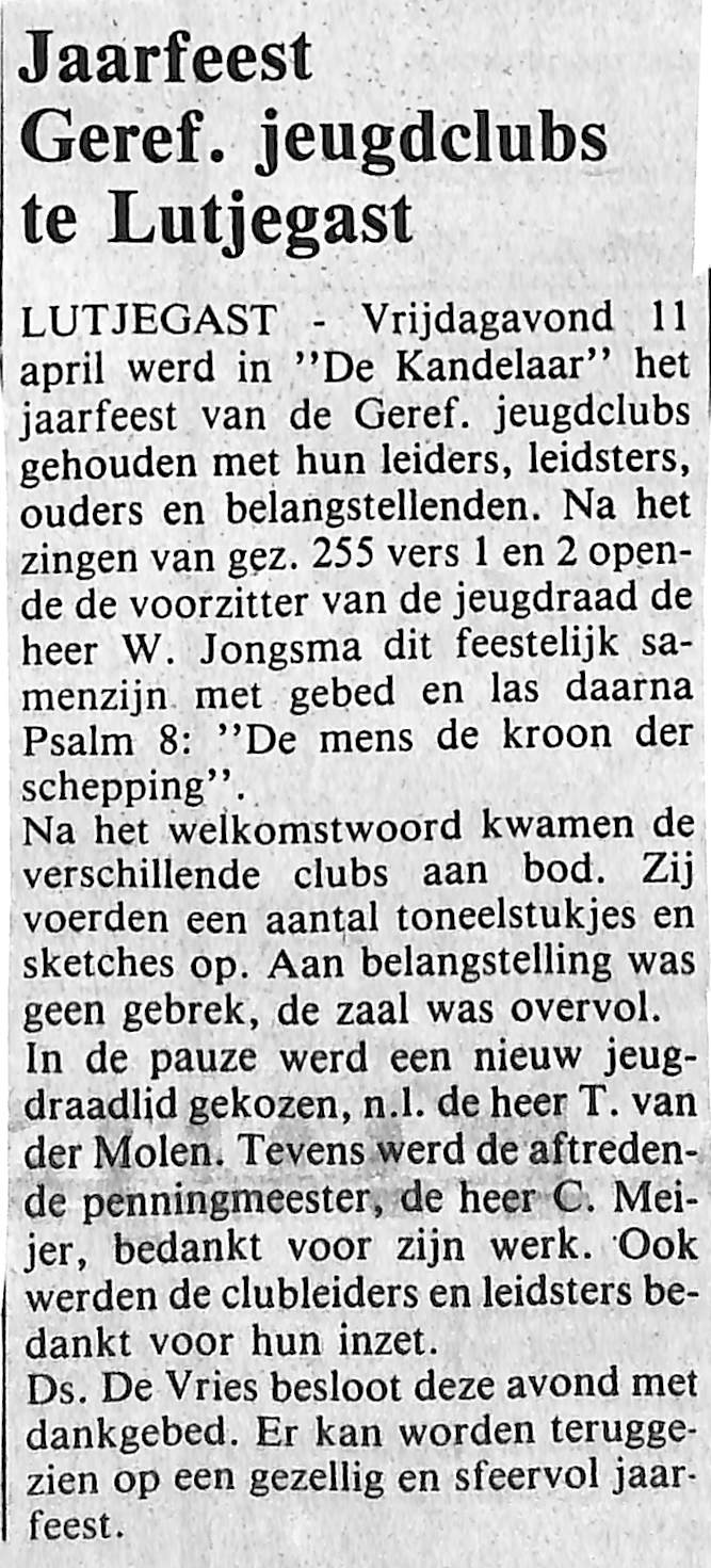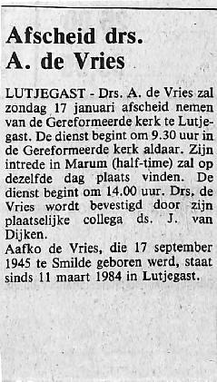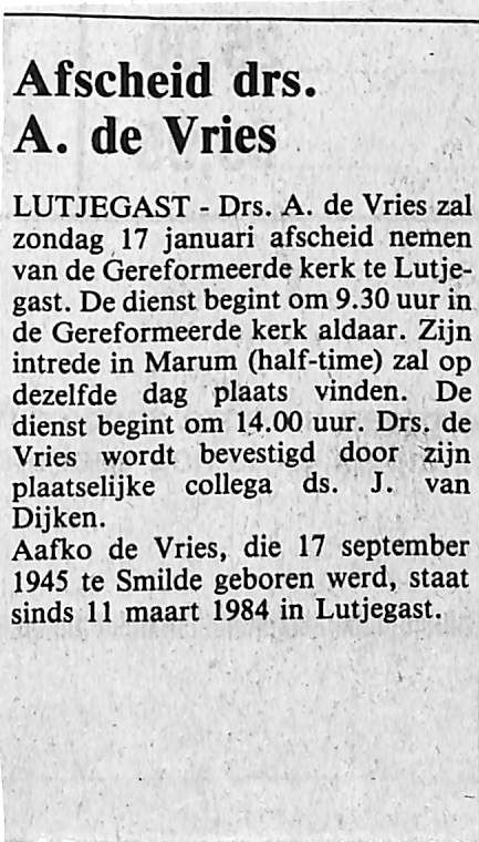 Neemt afscheid in de Geref. kerk in Lutjegast en half werken in Marum