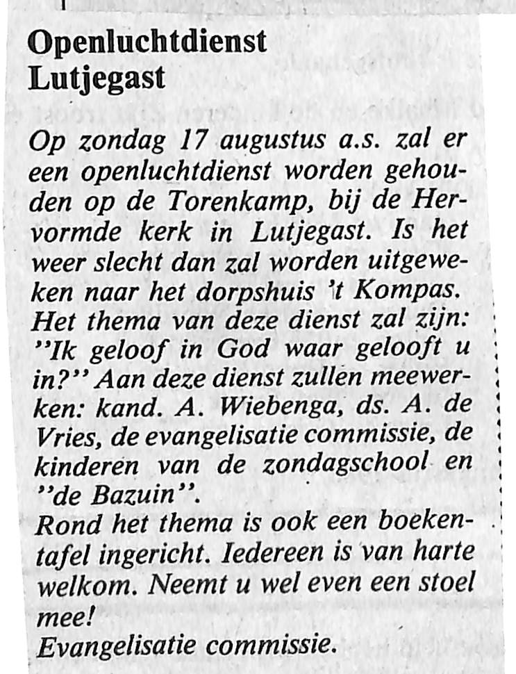 openluchtdienst op het Torenkamp; Wiebenga, de Vries,