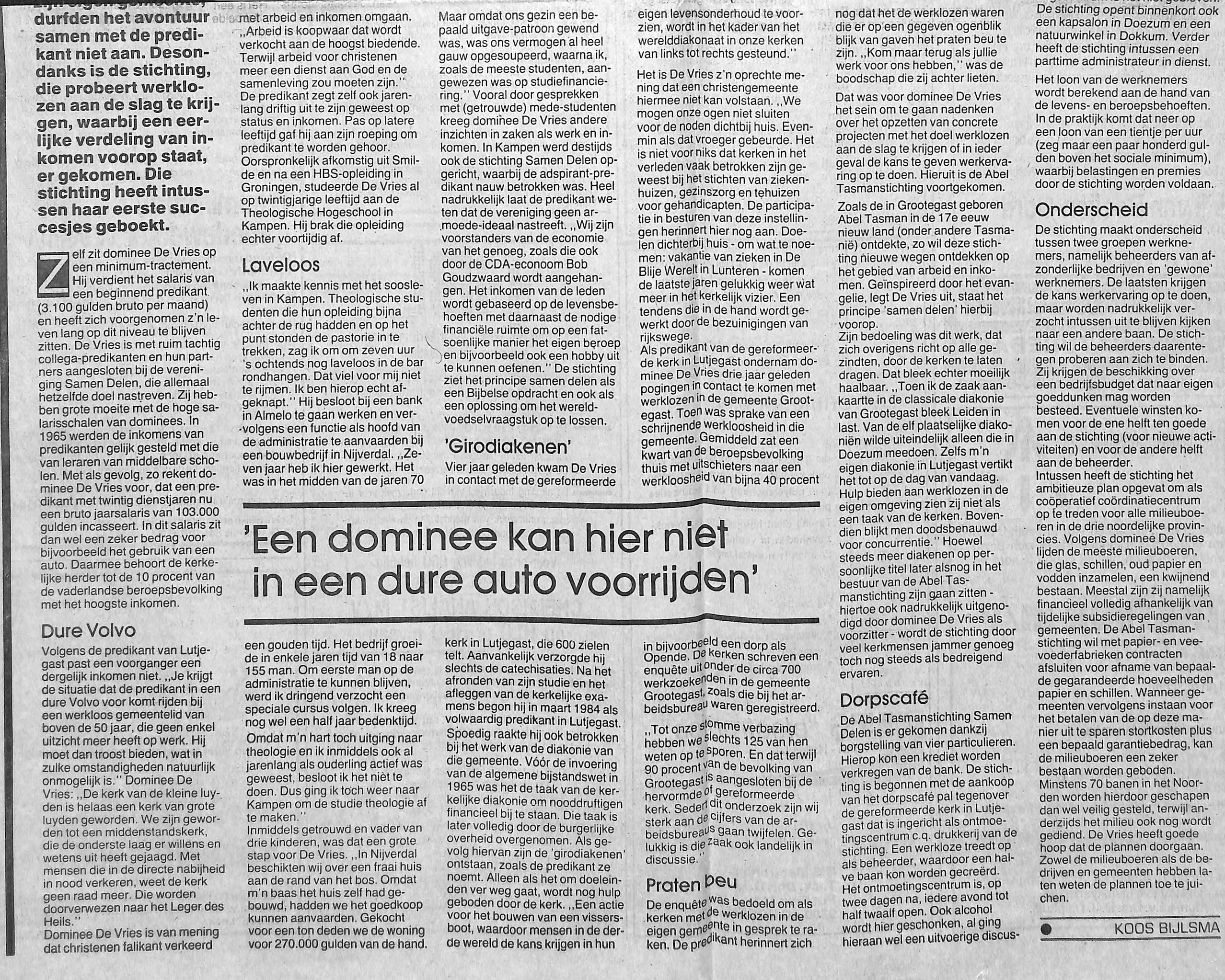 Ds. De Vries wil de hul;pverlening op gang helpen in eigen omgeving.