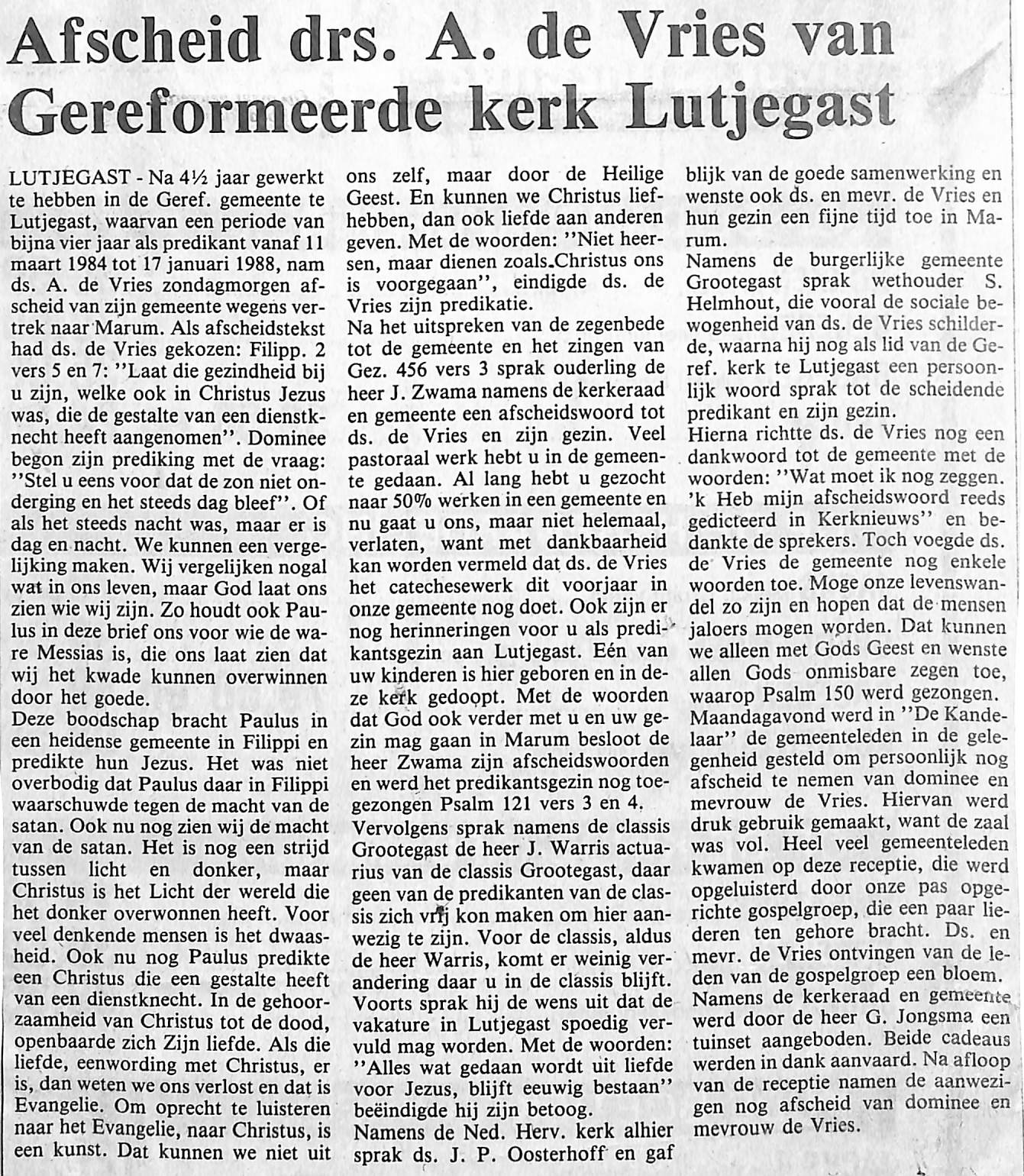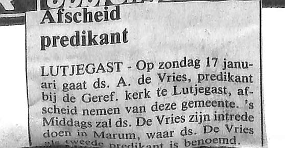Afscheid Ds. Aafko de Vries
