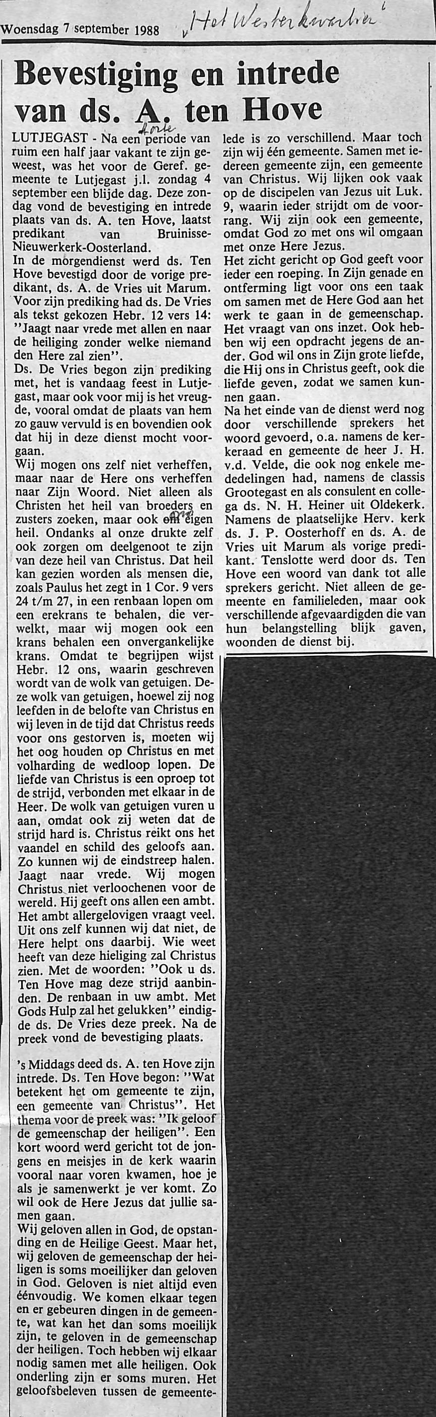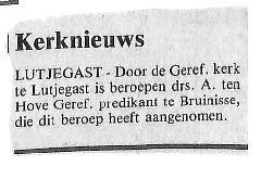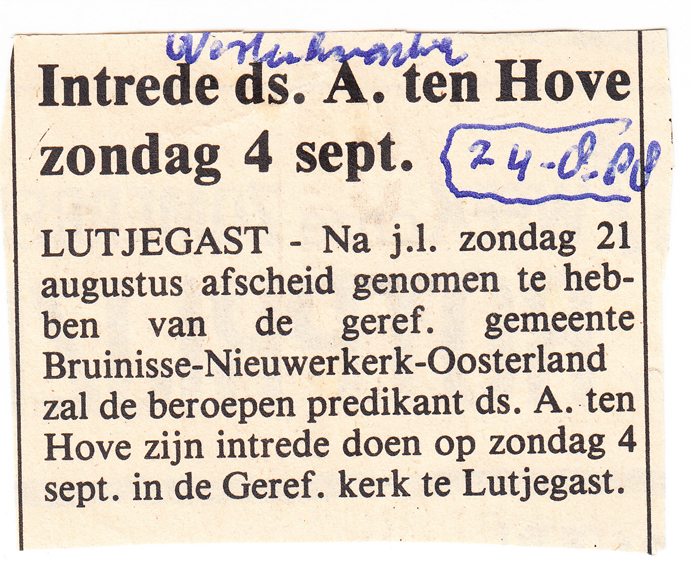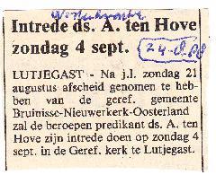 intrede Ds. A. ten Hove