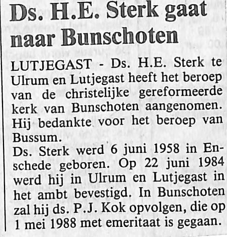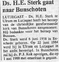Ds. H.E. Sterk vertrekt naar Bunschoten