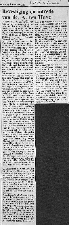 intrede Ds. A. ten Hove in de gereformeerde kerk