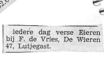 F. de Vries De Wieren 47 Verse eieren.
