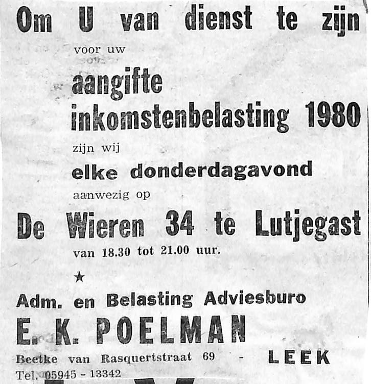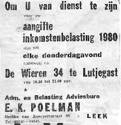 advertentie van Administratie en Belansting adviesbureau E. K. Poelman