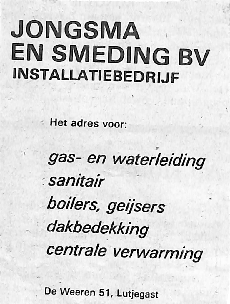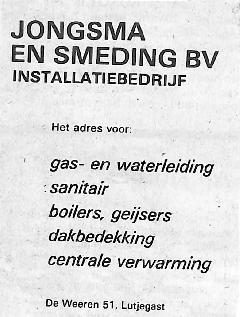 Jongsma en Smediding,. Sanitair, dakbedekking, CV.