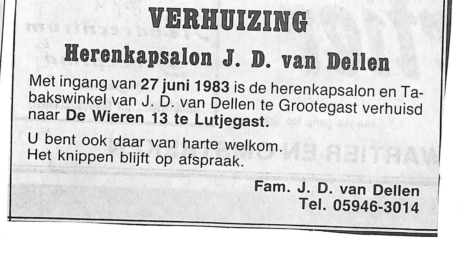 Kapsalon van J.D. van Dellen naar De Wieren 13. 27-06-1983